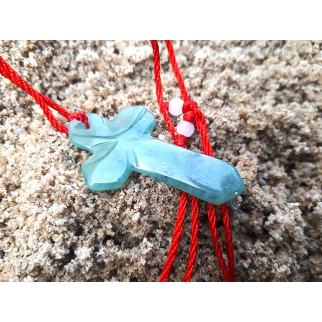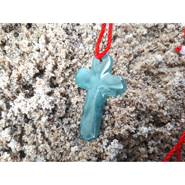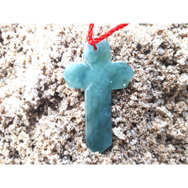 Liontin Batu Permata Giok Jadeite Jade Type A Burma Bentuk Salib JDT024