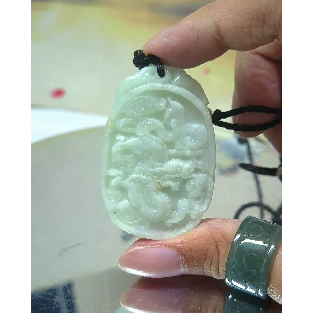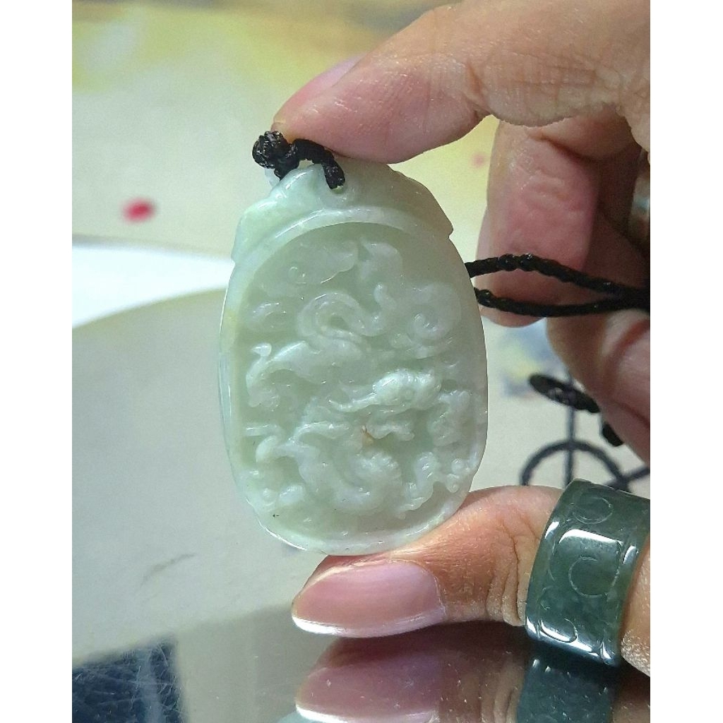 Ba0153 Liontin Giok Jadeite Ukiran Naga Bersertifikat Grade A
