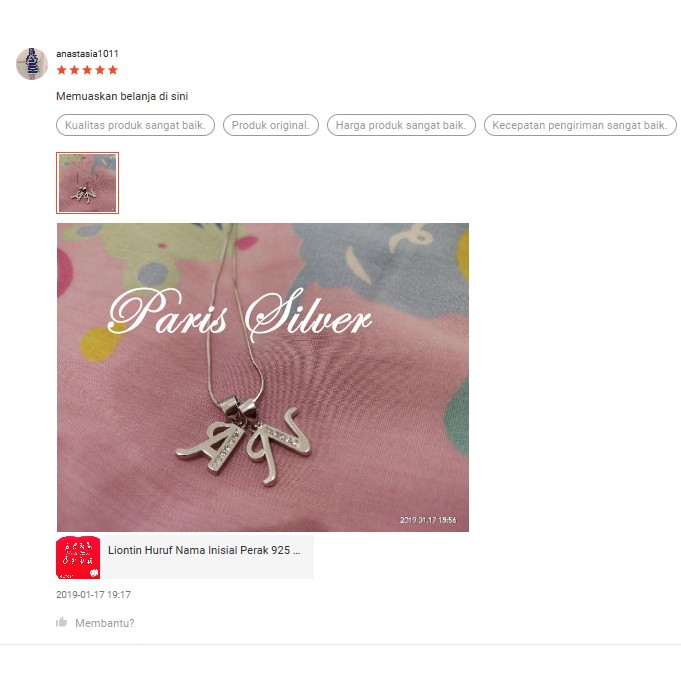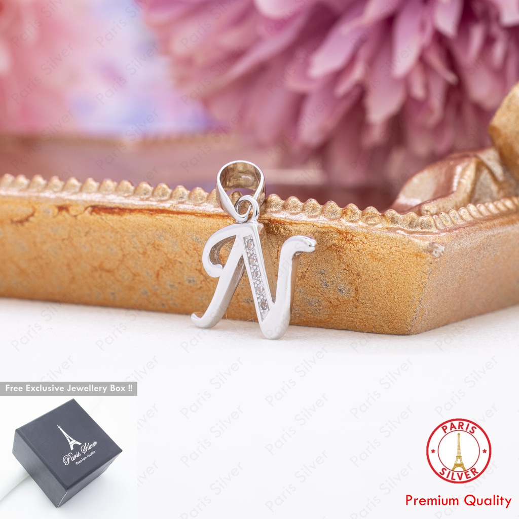 Liontin Huruf Nama Inisial Perak Asli 925 Silver Lapis Emas Putih Alfabet Bandul Kalung Alphabet