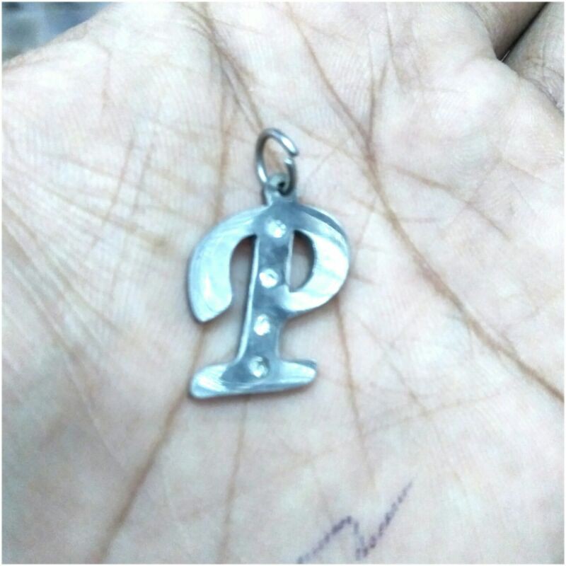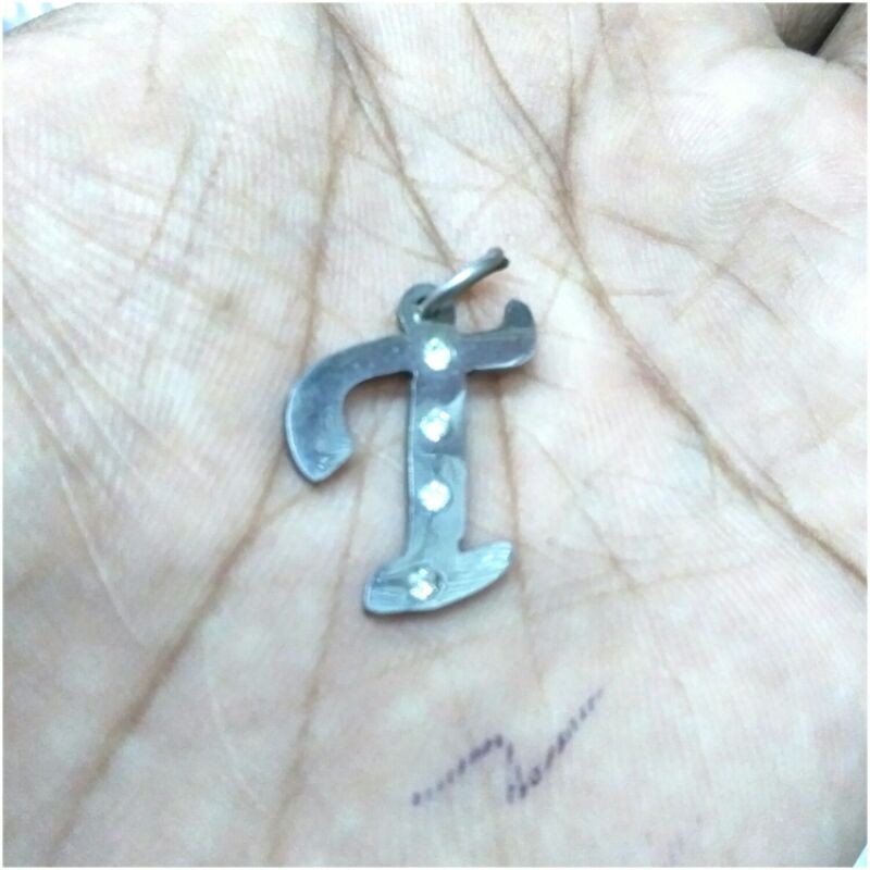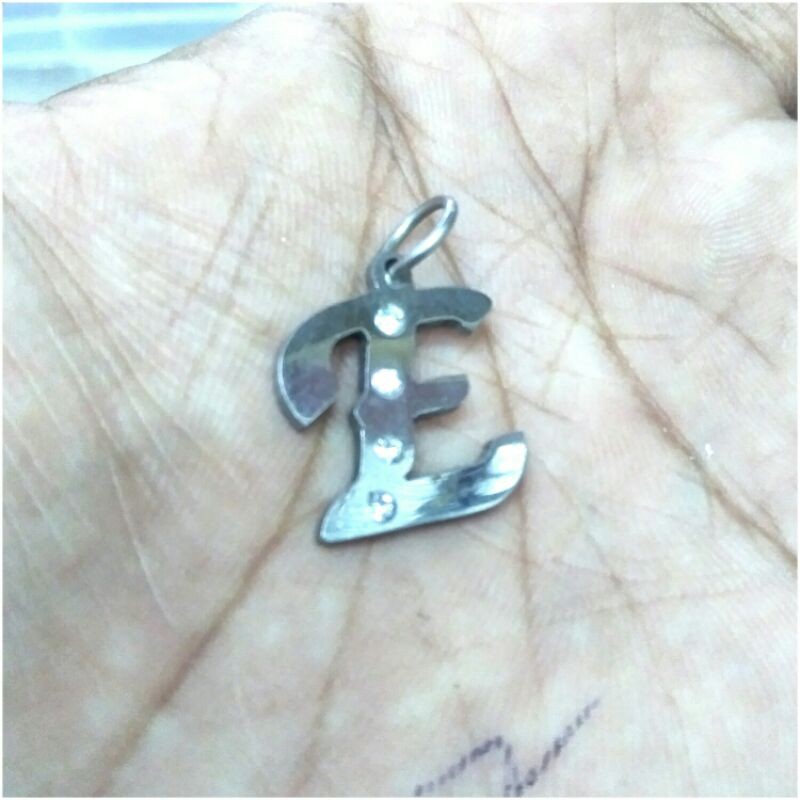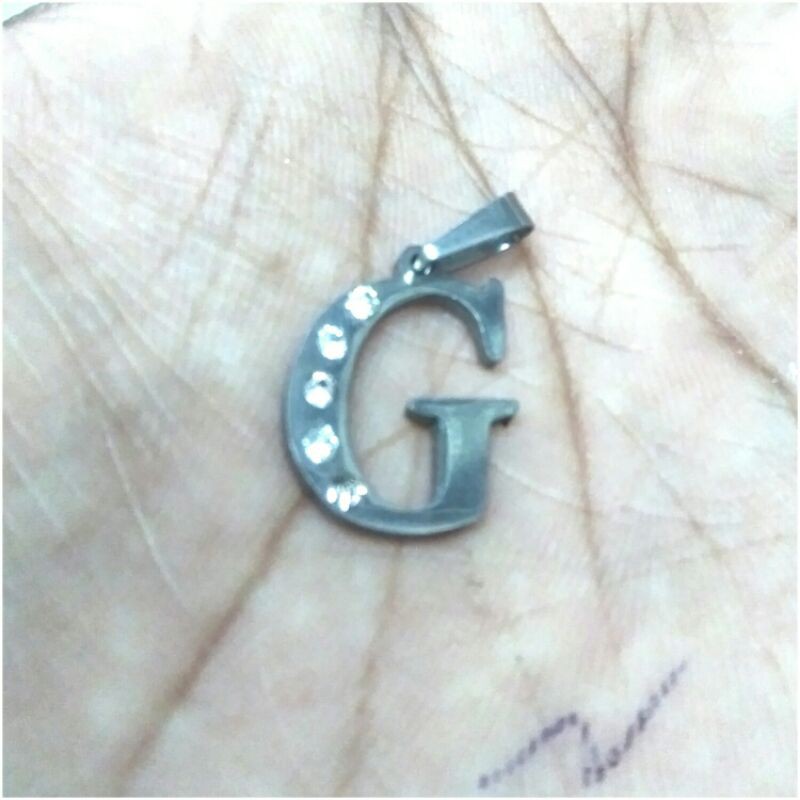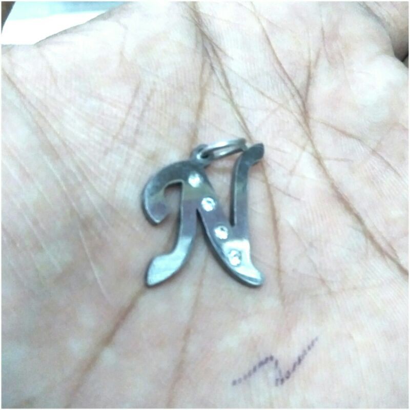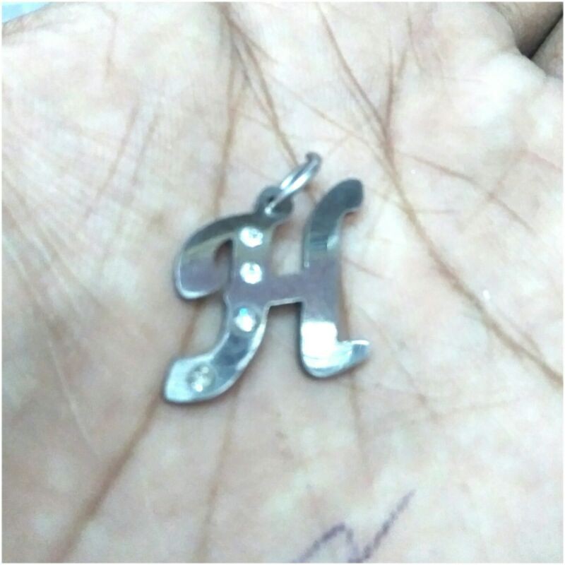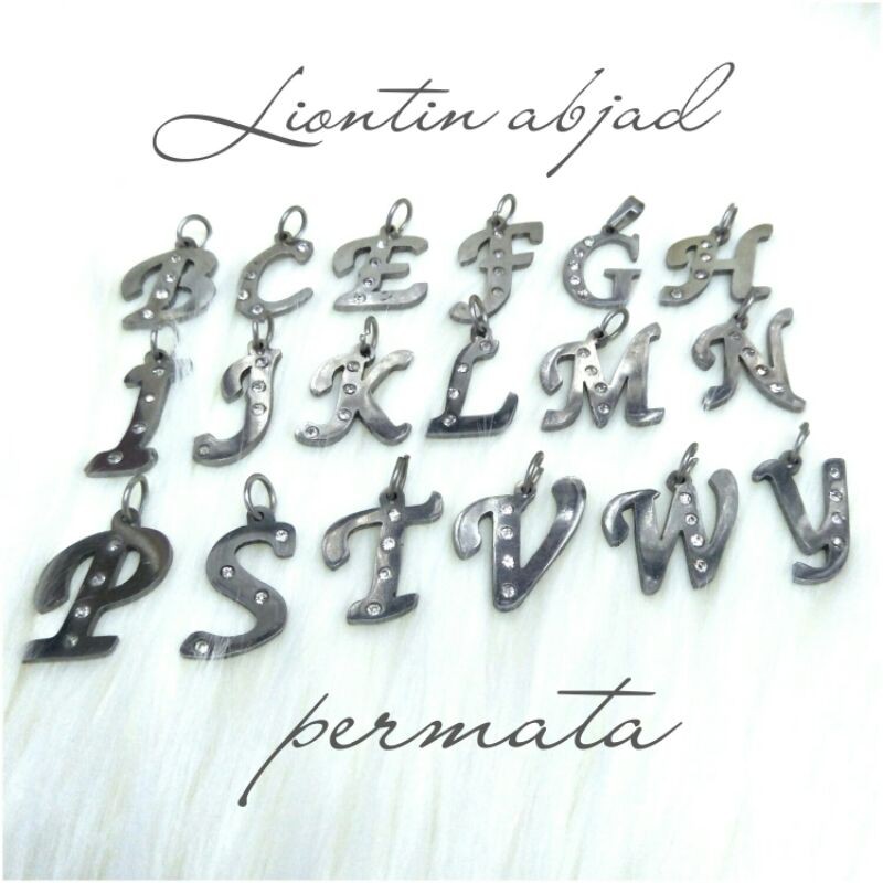 Liontin abjad/huruf permata besi/baja putih (monel)