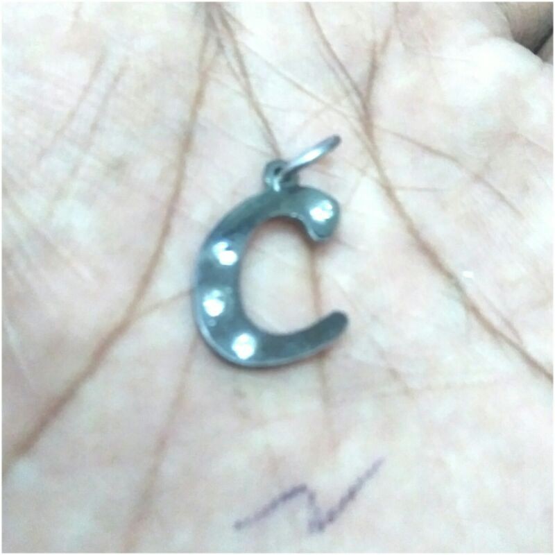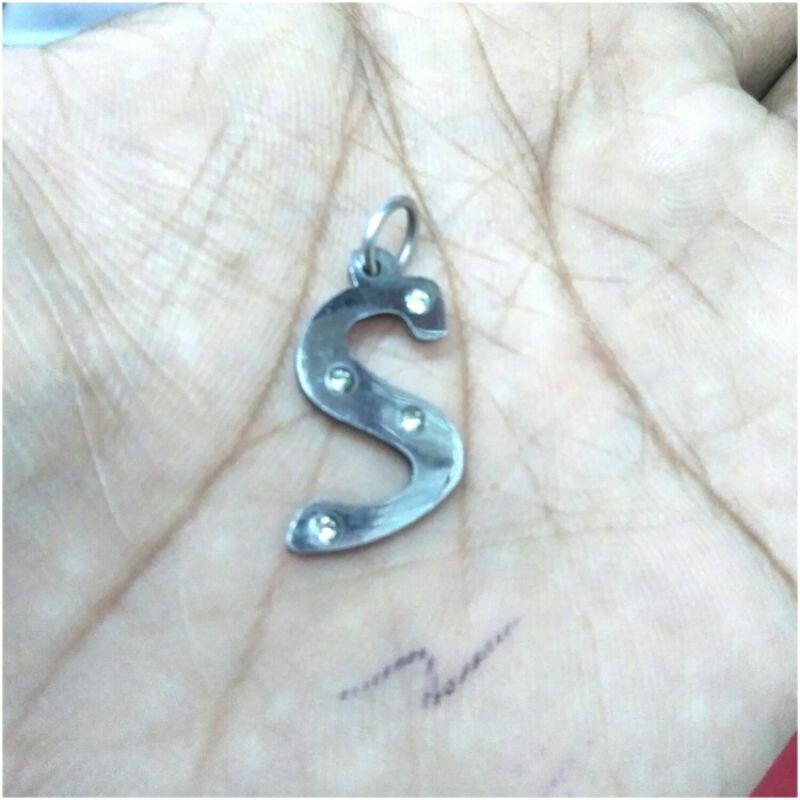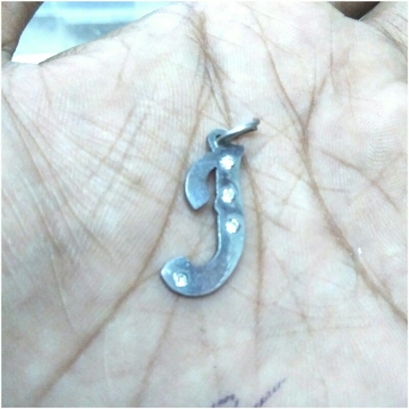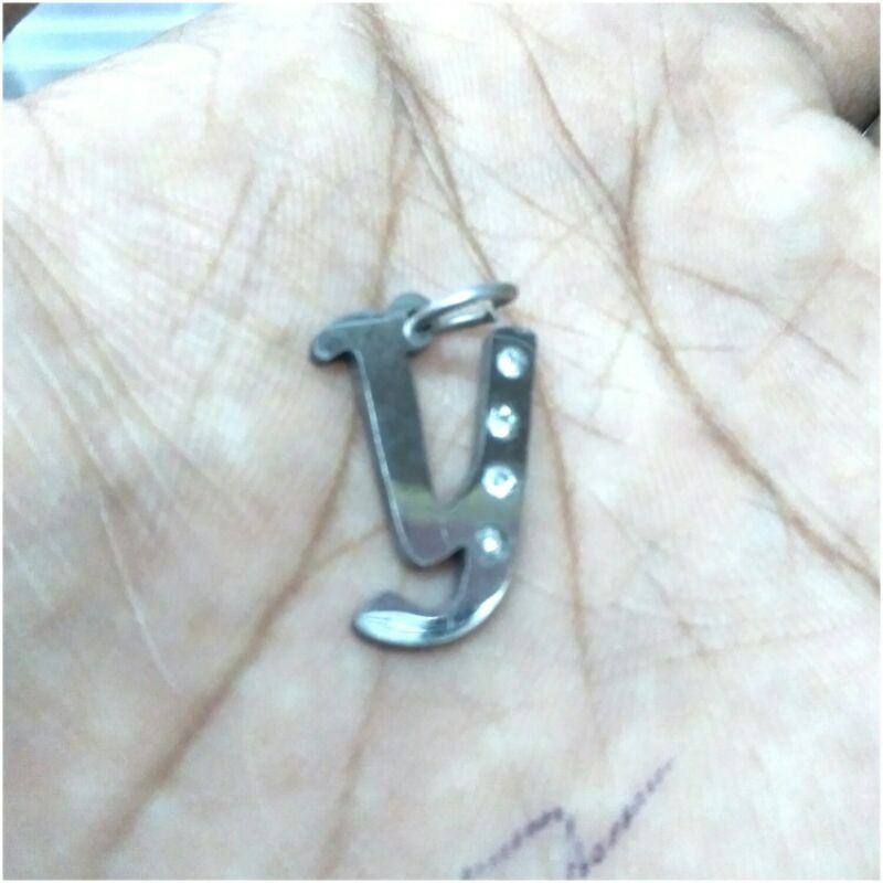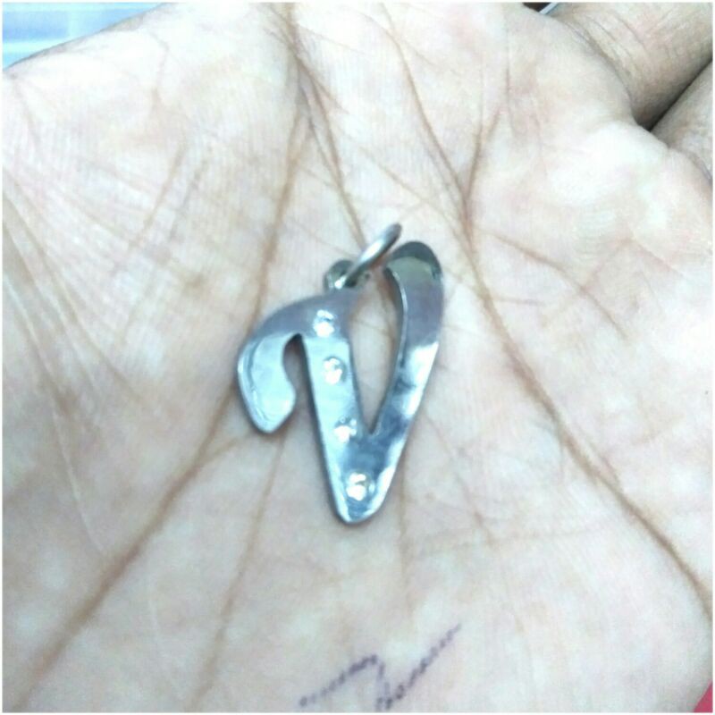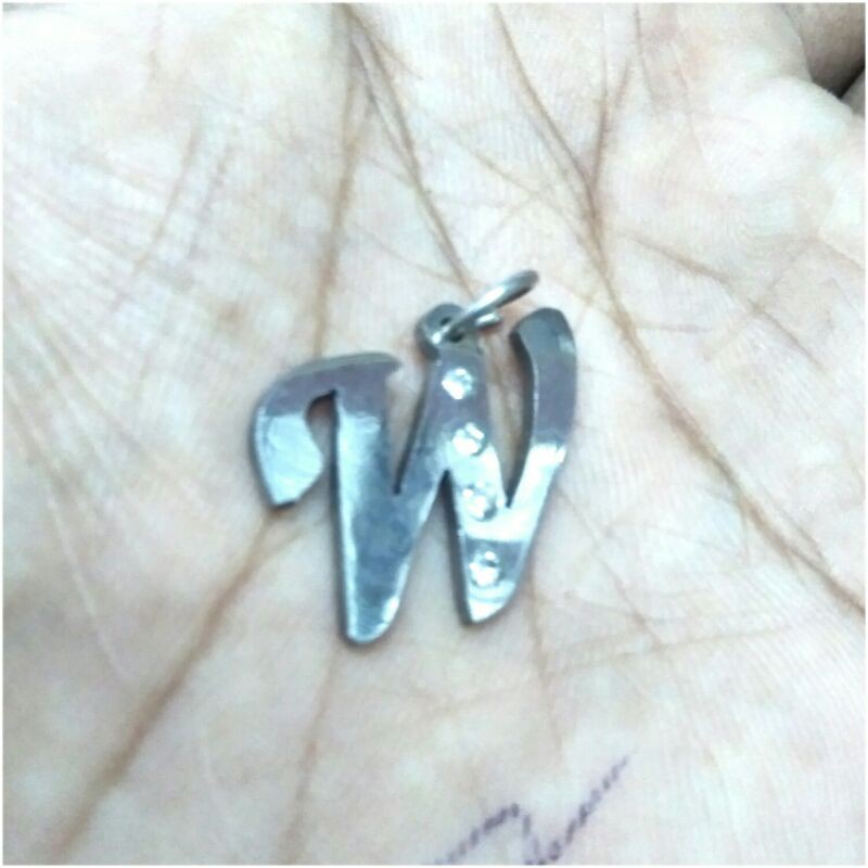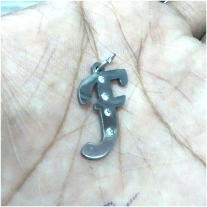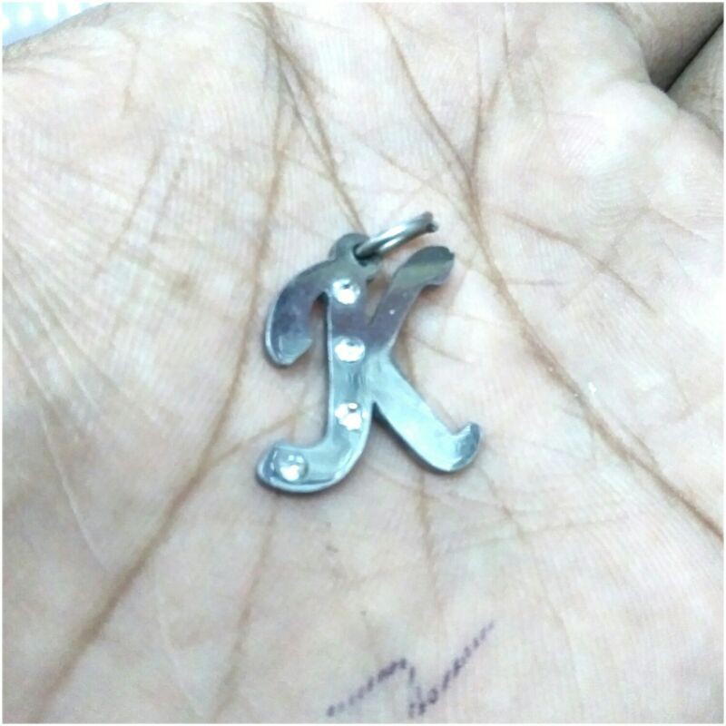 Liontin abjad/huruf permata besi/baja putih (monel)