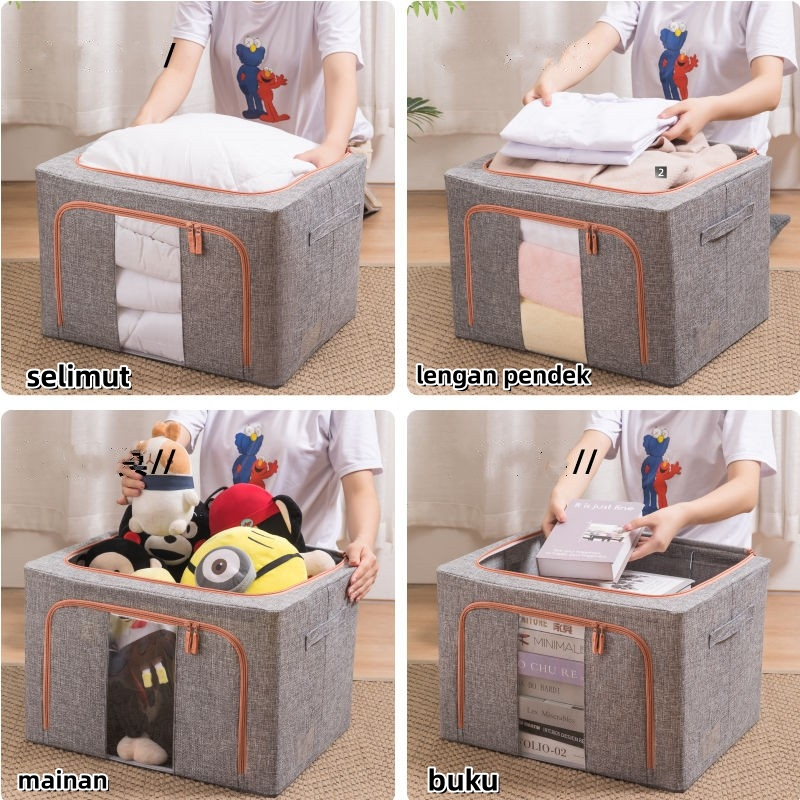 Lipat Storage Box 66L/110L tahan lembab Kotak Penyimpanan Serbaguna Organizer Kotak Mainan Perlengkapan Rumah Double Zipper Large Box
