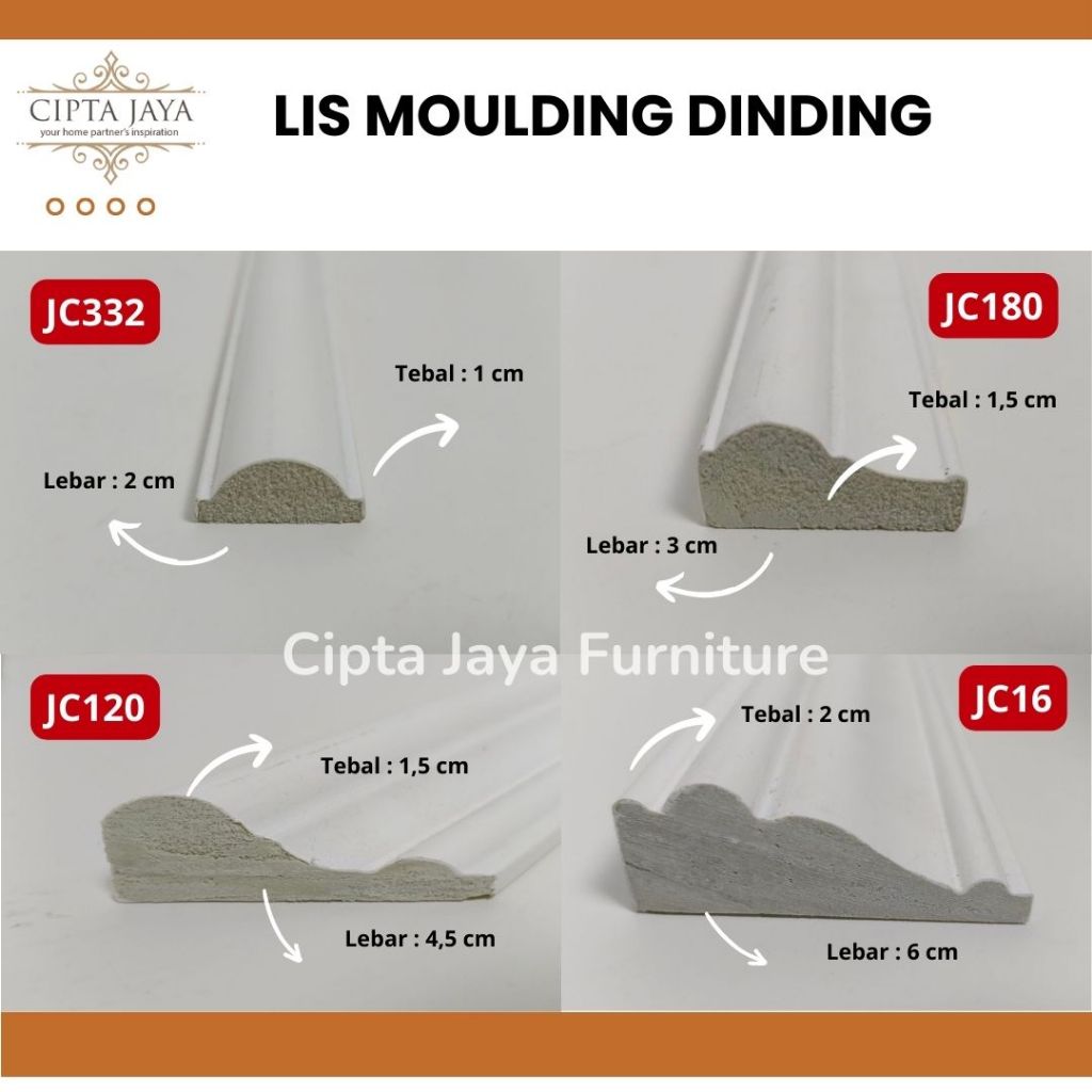 Lis Wall moulding molding premium gipsum zehn dinding siap pakai pvc foam wall panel wallpanel wainscoting profil wallstiker wallfoam walpaper panjang 100 120 240 cm