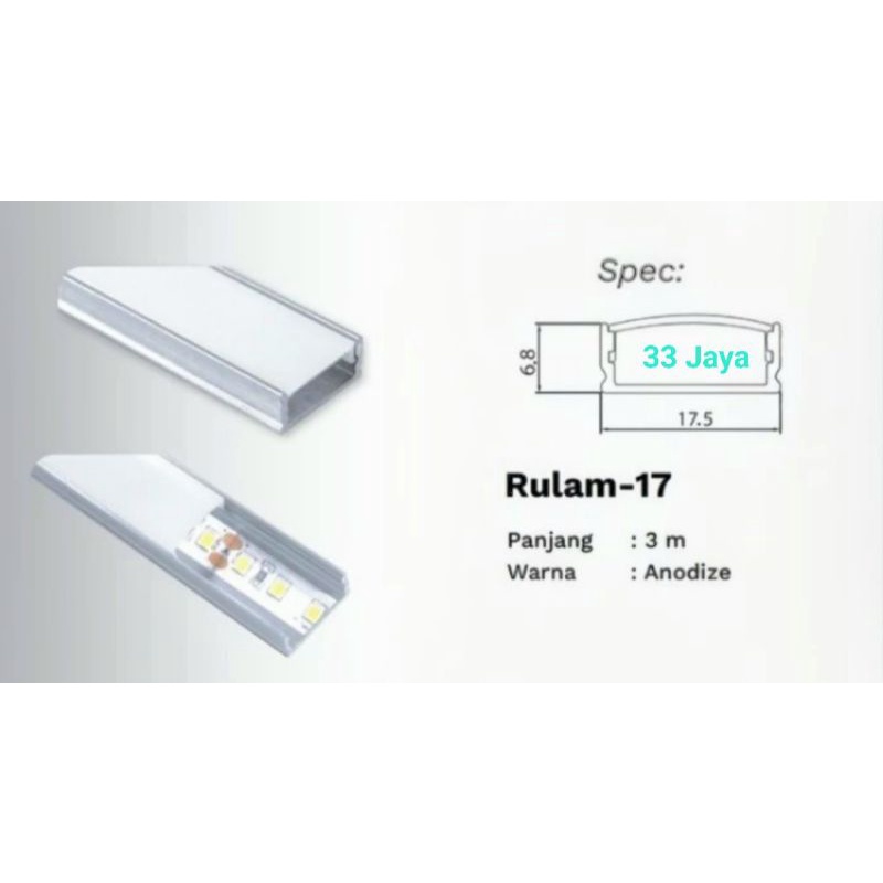 List Rumah Lampu LED Strip Rulam-17 Almunium Acrylic Anodize n Black n Putih HUBEN