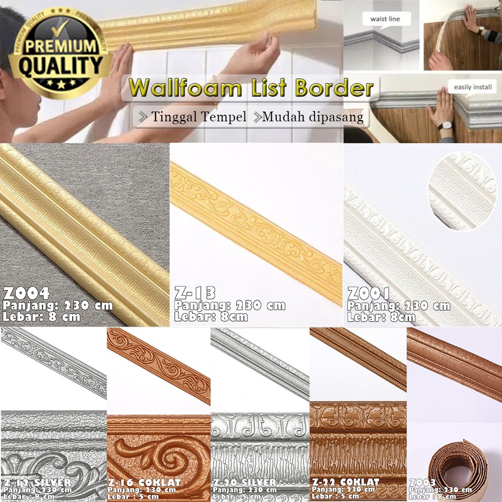 List Wallpaper Foam Wallpaper Border 3D Foam P230cm x L8cm atau P 230 cm x L 5 cm Border silver List foam gold Foam Border coklat Border Foam putih atau white