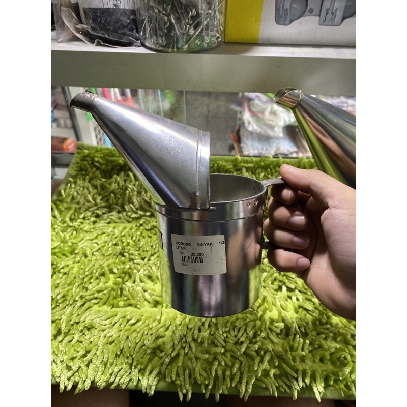 Literan corong besi gagang 500ml - Literan oli 1 liter - Alat takar corong