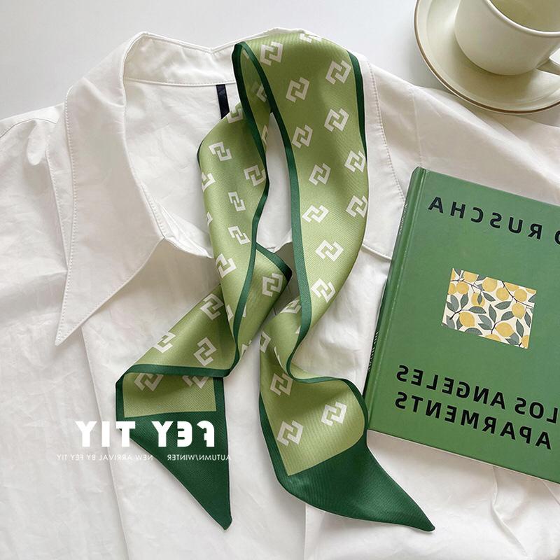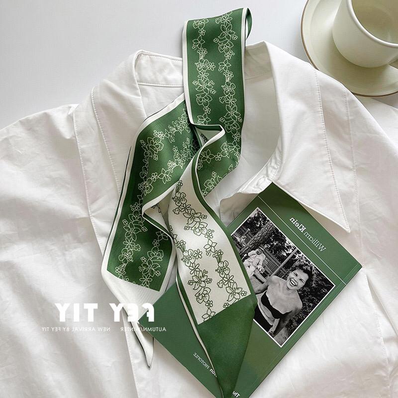 Little Angel - Syal Sutra Kecil Korea Scarf Fashion Wanita Hijau Putih Lembut