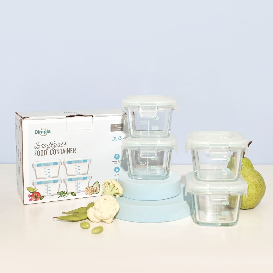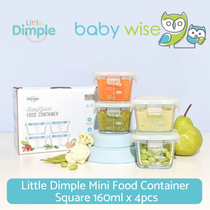 Little Dimple Mini Food Container Square 160ml x 4pcs