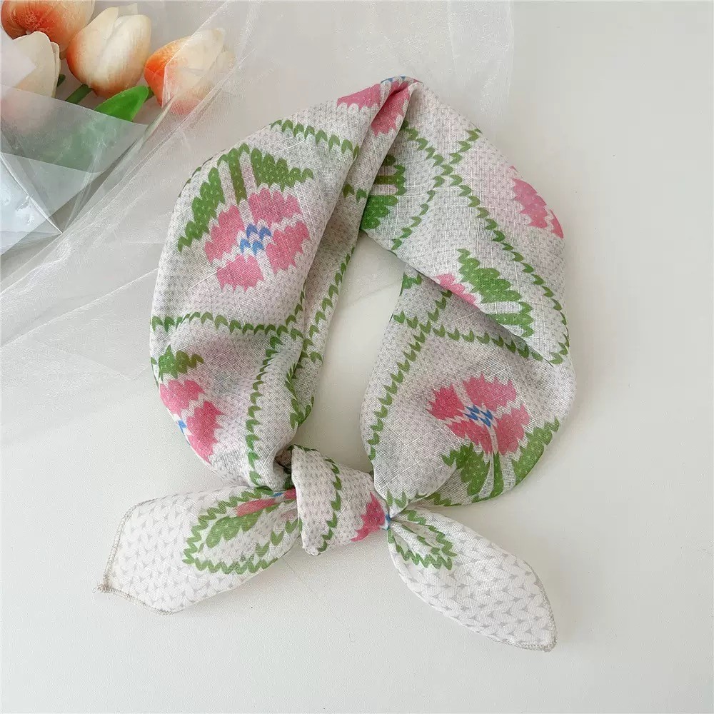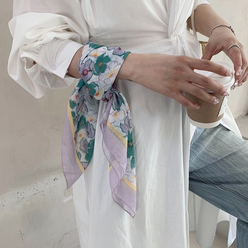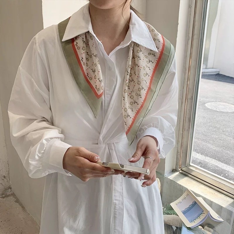 Little Maple - Gardening Flower Korean Aesthetic Pattern Scarf / Syal Korea / Fake Collar / Dasi / Twilly