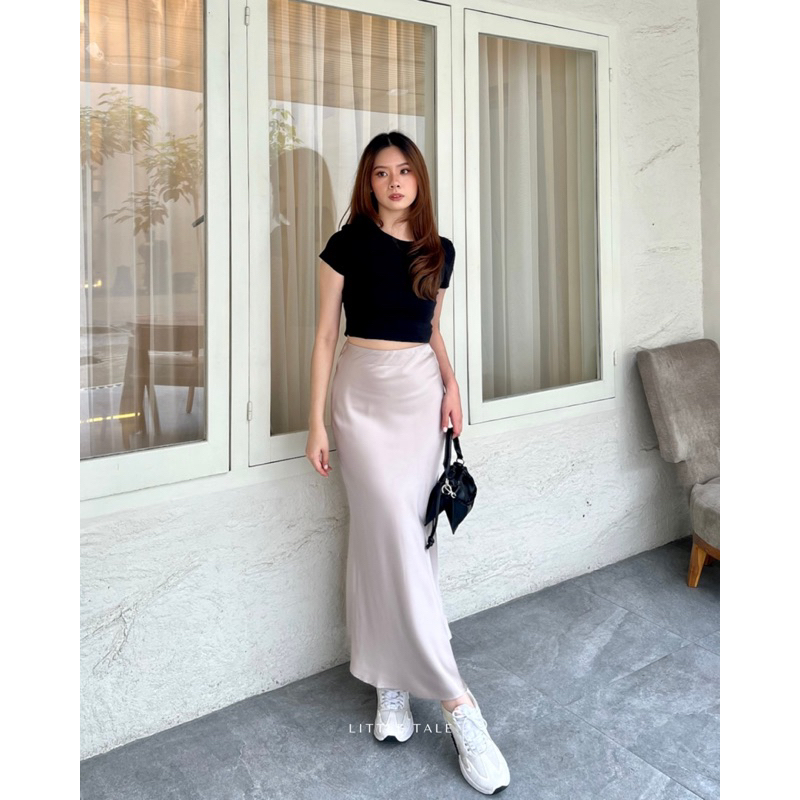 Little Tale - Meadow Silk Skirt / Rok Wanita / Rok Satin / Korean Skirt / Maxi Skirt