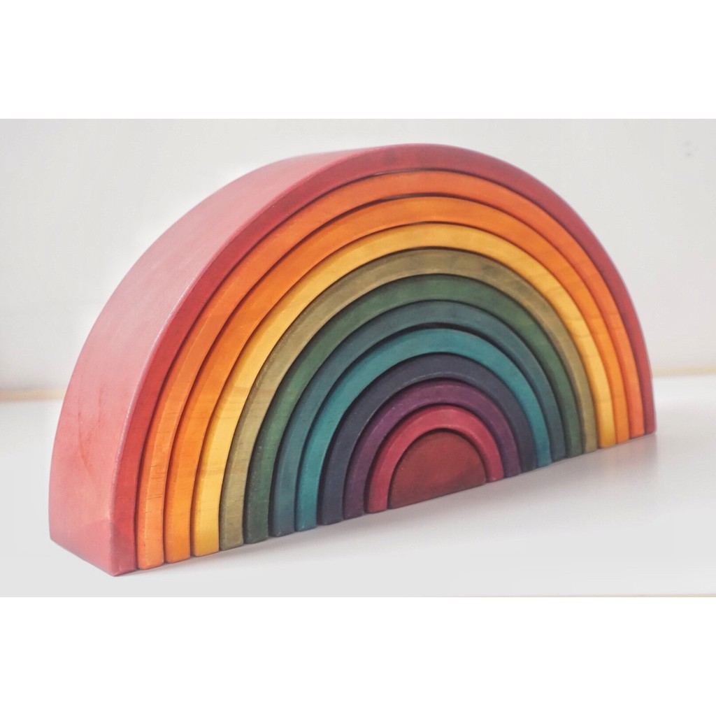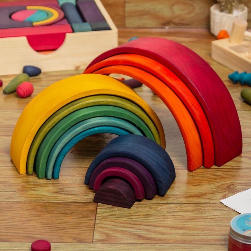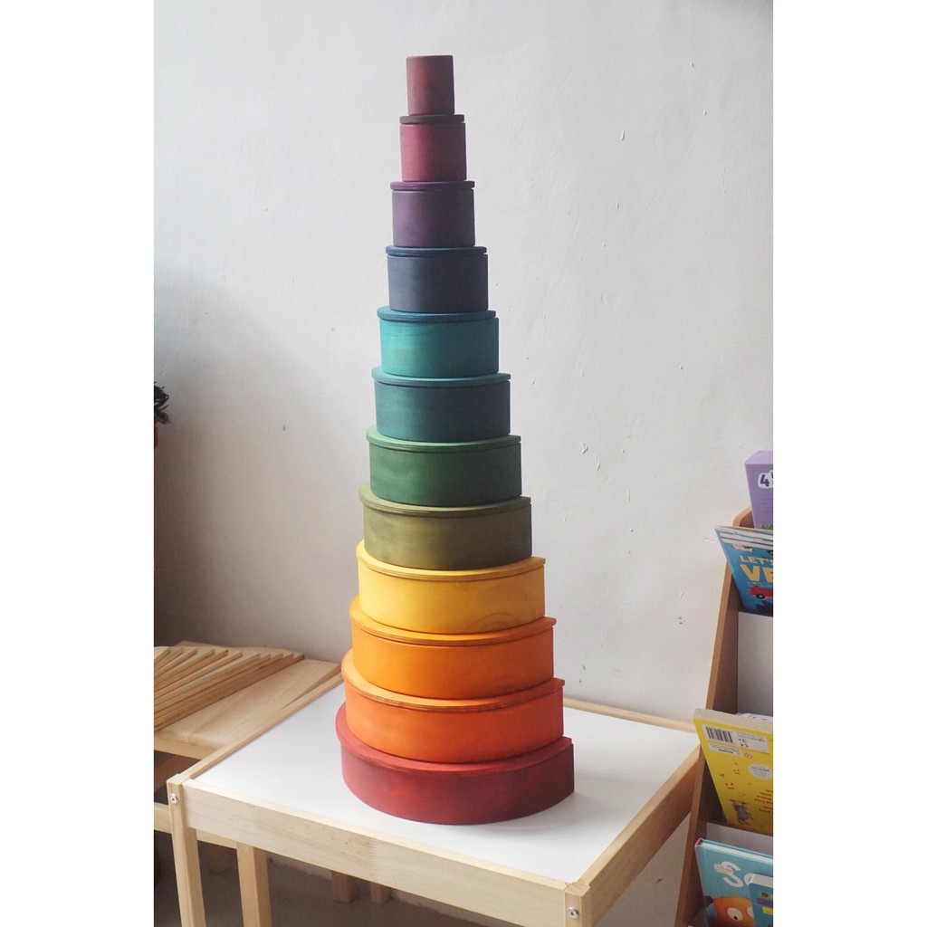Littlemonq Large Rainbow Stacker 12pcs Wooden Montessori Toys/ Mainan Susun Bentuk Pelangi isi 12 Mainan Kayu Edukasi Littlemonq