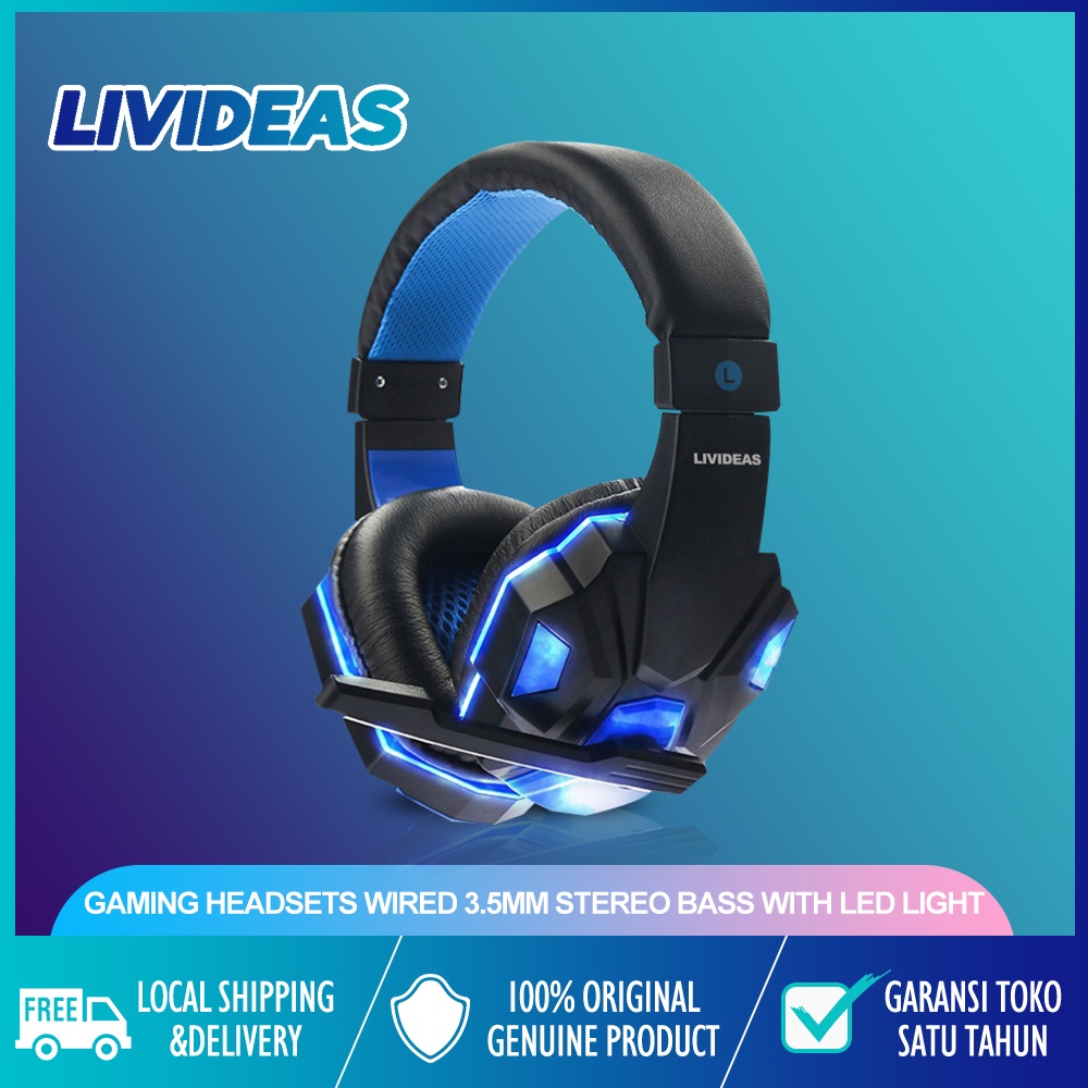 Livideas Headset Bluetooth Gaming Microphone LED Headphone Wireless Gaming Super Bass For Computer Laptop