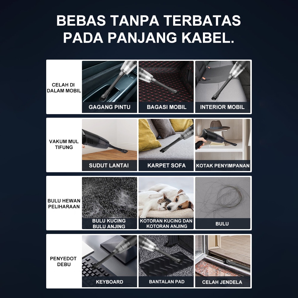 Livideas Vacum Cleaner Portable Penyedot Debu Vacuum Cleaner mini 9000PA Penghisap Debu Mobil Wet And Dry Cordless Vakum Cleaner