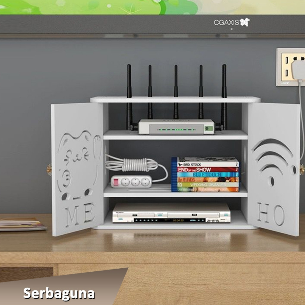LivinLuxe - Rak Dinding Rak Meja Tempat Penyimpanan Wifi Dengan Lubang Kabel Antena Wifi Rak Karakter Motif Kucing Tempat Dvd Player Kaset Radio Koleksi Tape Recorder Dekrasi Dinding Rumah Kos Kontrakan Apartmen