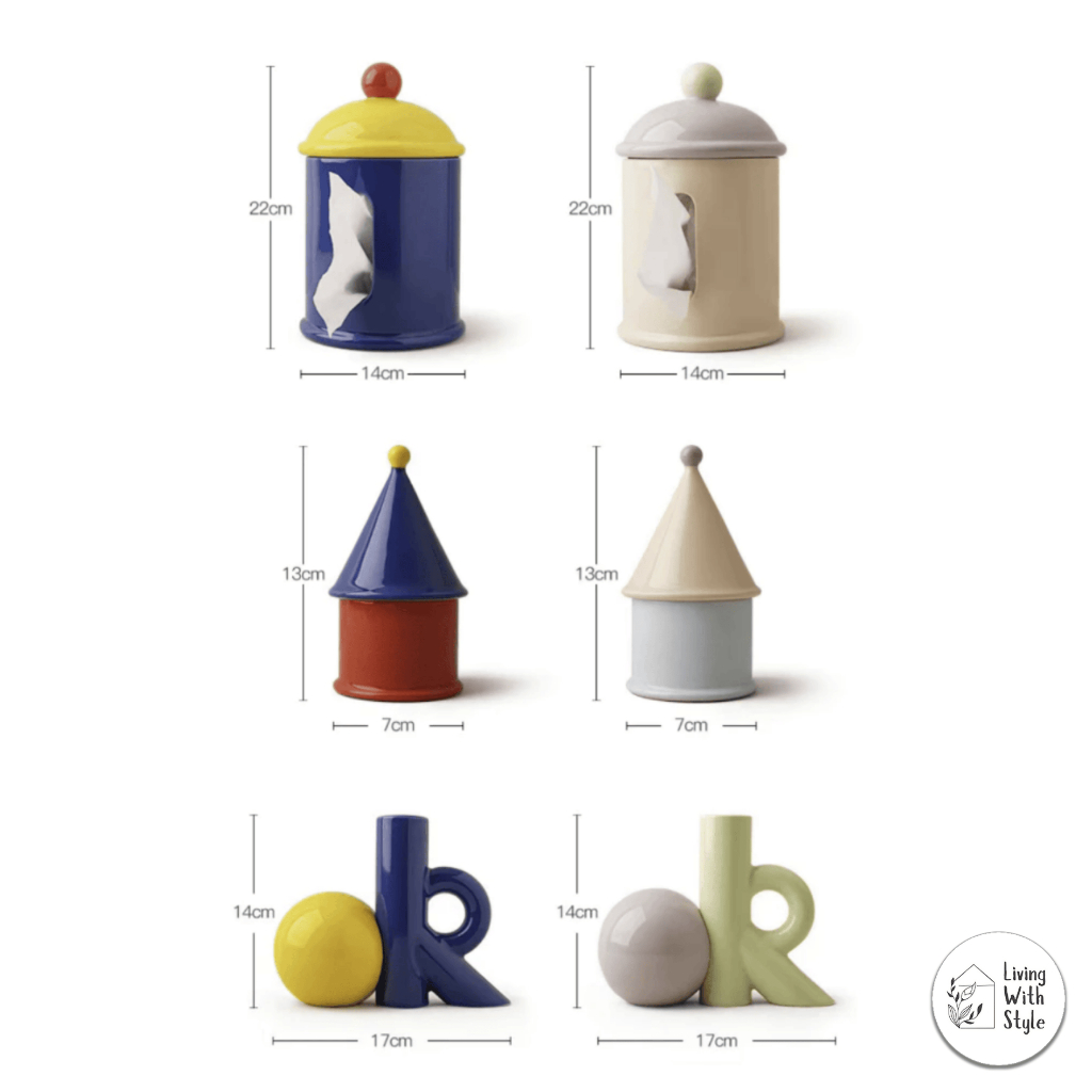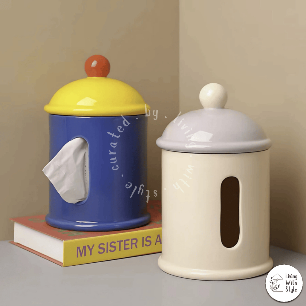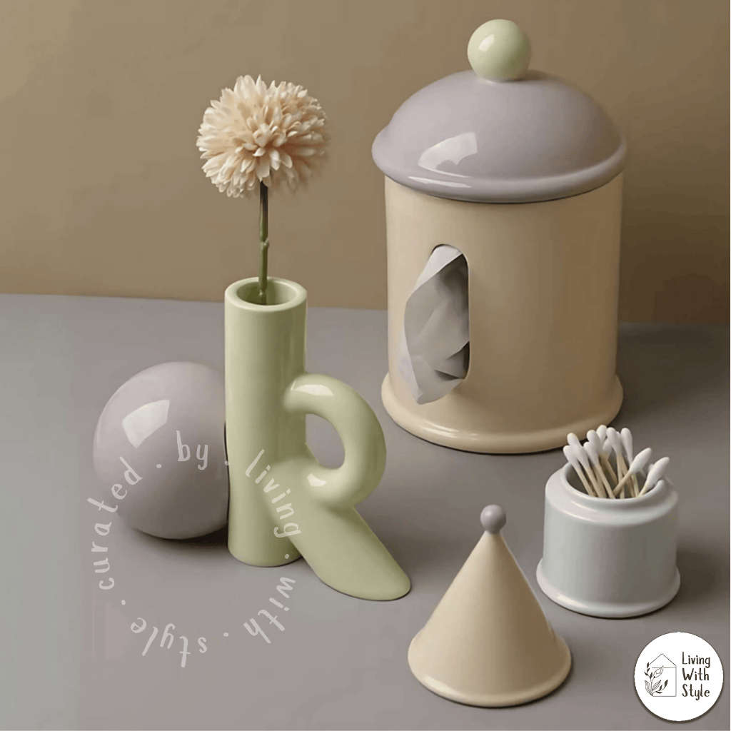 Living With Style - Colour Blocking Home Essential Set / Kebutuhan Rumah Aesthetic Unik / Tissue Box Cotton Bud Holder Flower Vase Decor / Tempat Tissue Kapas Vas Bunga Premium / Luxury Ceramic Keramik