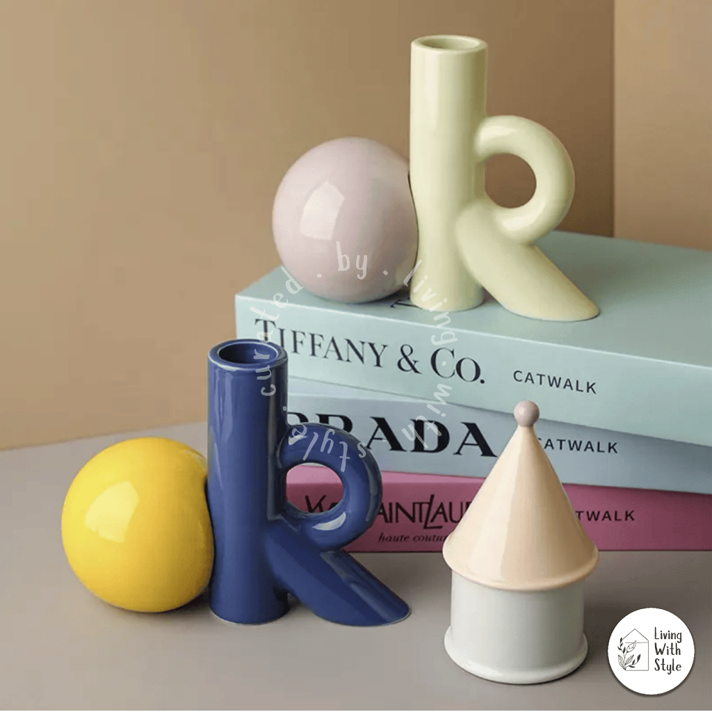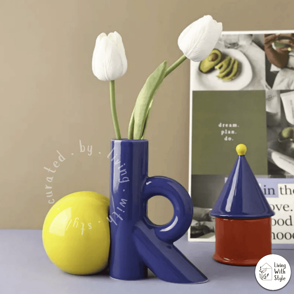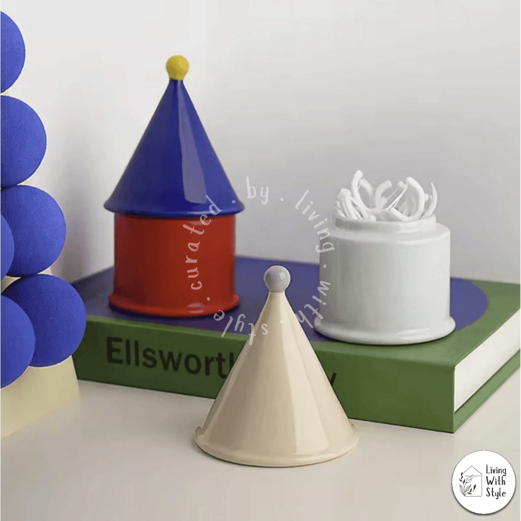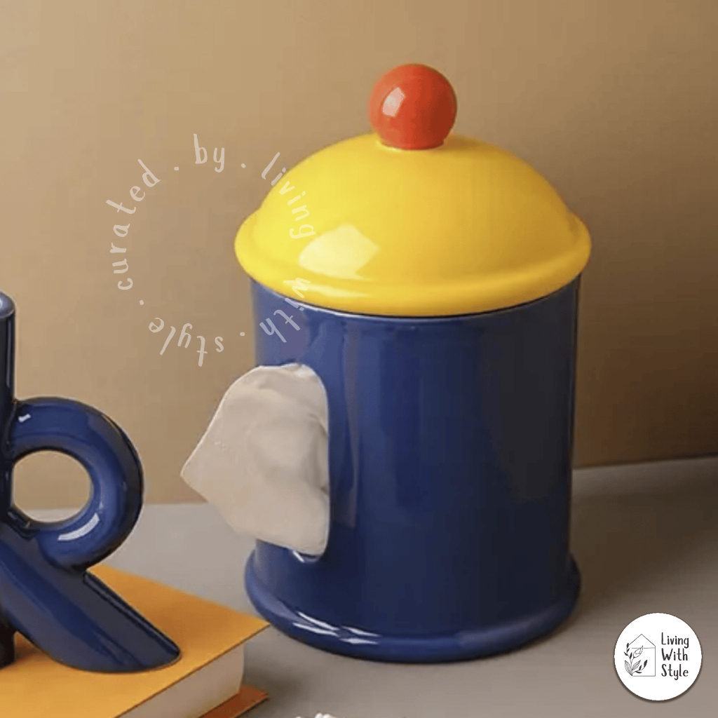 Living With Style - Colour Blocking Home Essential Set / Kebutuhan Rumah Aesthetic Unik / Tissue Box Cotton Bud Holder Flower Vase Decor / Tempat Tissue Kapas Vas Bunga Premium / Luxury Ceramic Keramik