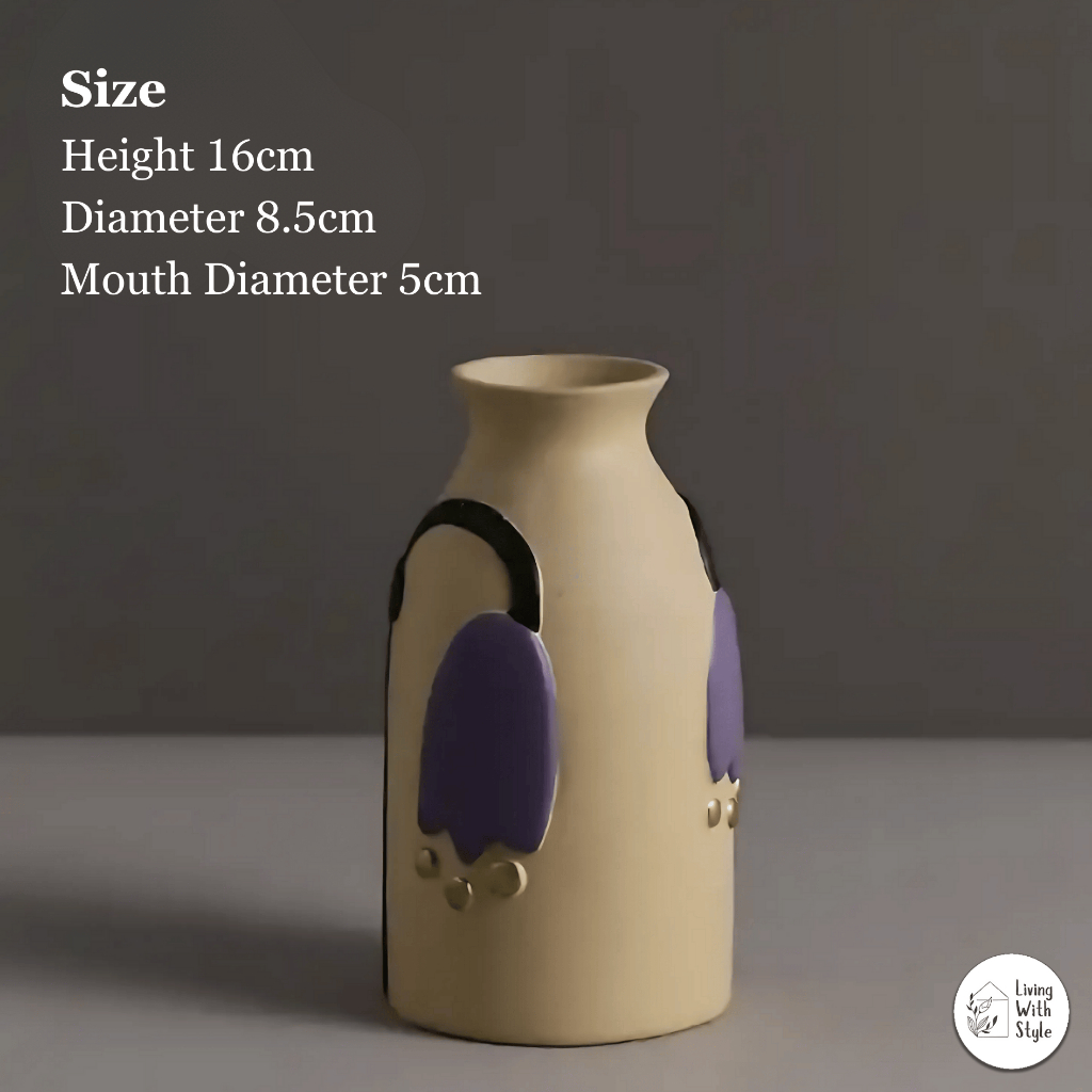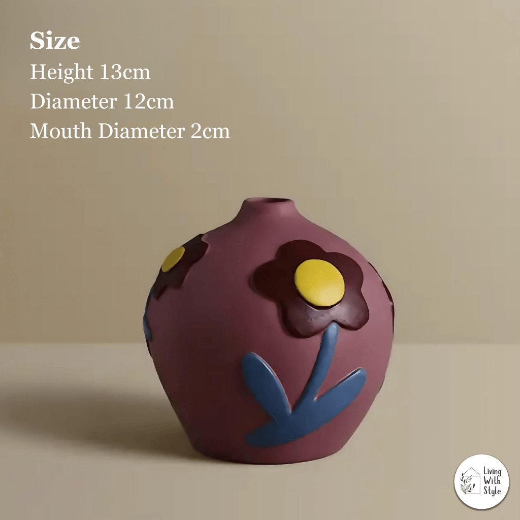 Living With Style - Colourful Nordic Flower Vase / Vas Bunga Keramik Motif Bunga / Warna Warni Cantik Aesthetic Luxury Mewah / Pajangan Lucu Unik