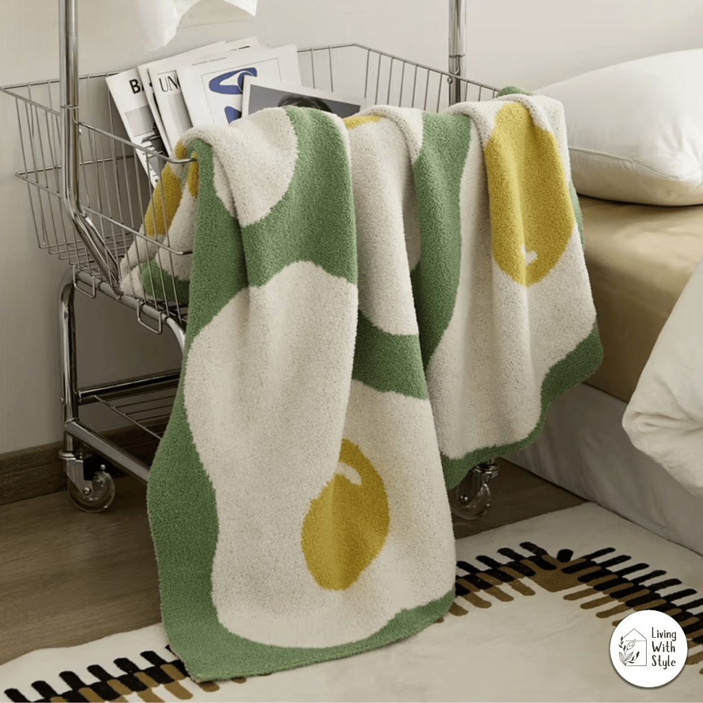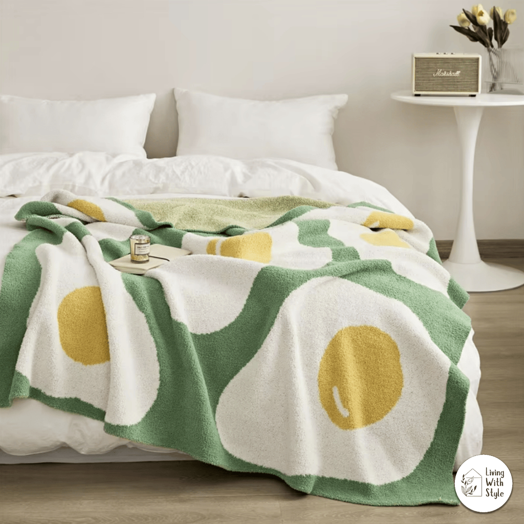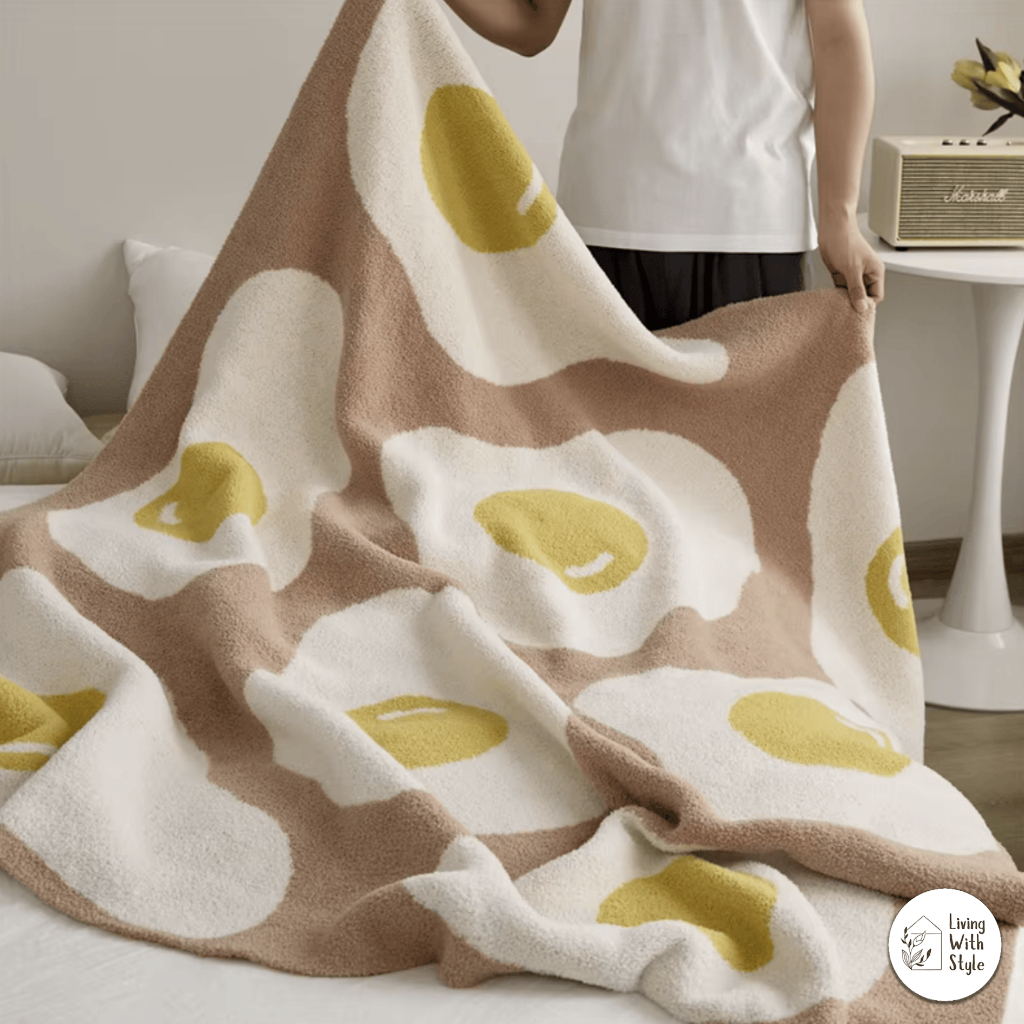 Living With Style - Egg Pattern Aesthetic Luxury Throw Blanket / Selimut Premium Motif Telur Lucu Unik / Sarung Cover Cantik Lembut