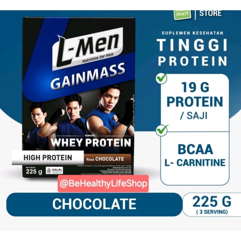 Lmen L-men Gain Mass Coklat / Banana 225 gr - suplemen penambah massa otot tinggi whey protein