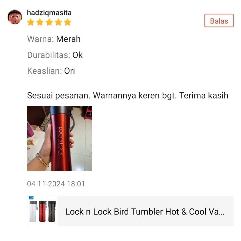 Lock n Lock Bird Tumbler Hot & Cool Vacuum Mug Botol Termos Panas & Dingin Tumbler Lock&Lock 400ml Botol Minum