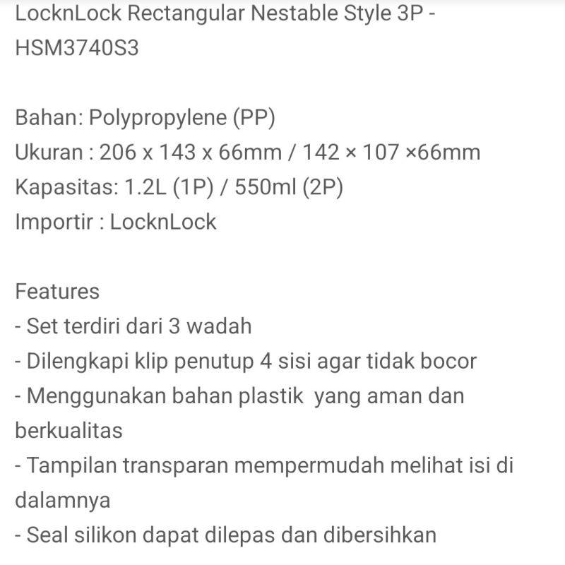 Lock n Lock Gift Set Isi 3 1.2 liter 500 ml Lock&Lock Retangular Nestable Style 3P LocknLock Lock & Lock