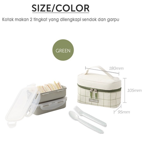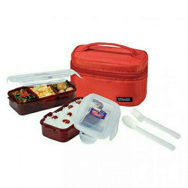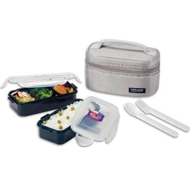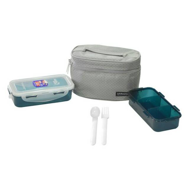 Lock n Lock lunch Box 2 Pcs with Bag & Spoon Fork Set kotak bekal Estetik LocknLock HPL752 HPL762
