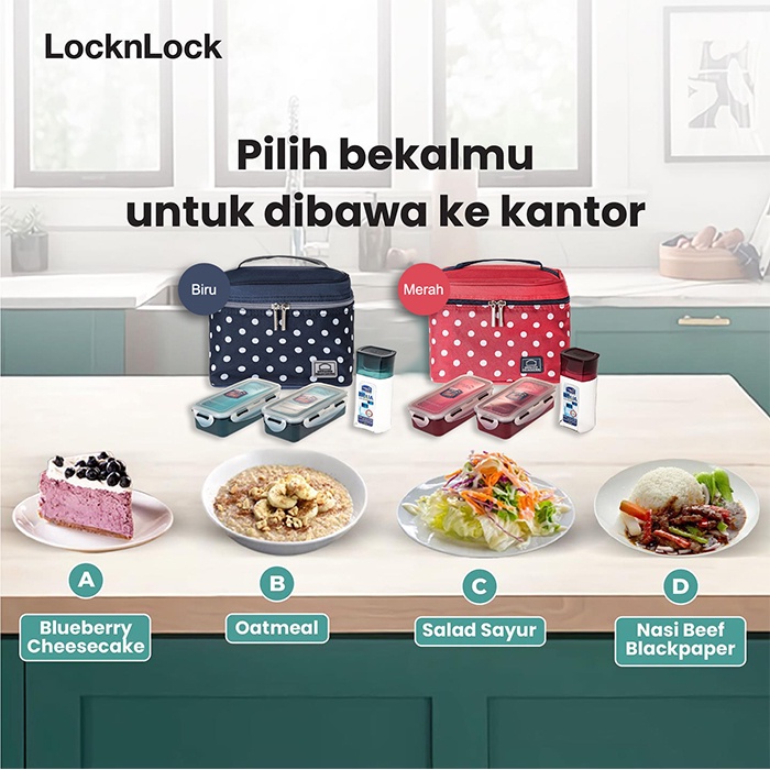 LocknLock Dotted Lunch Box Set - 1 Set Kotak Makan Motif Polkadot