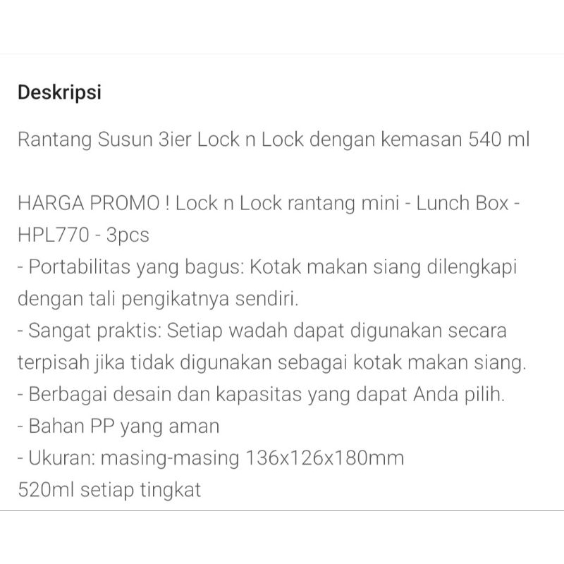 LocknLock Luch Box Tier Rantang Kotak Makan
