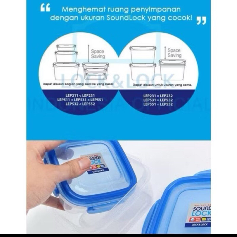 LocknLock Sound Lock LEP532 Rectangular Container Food Container 850 ml / Lock n lock SoundLock Kotak Container Makanan 850ml