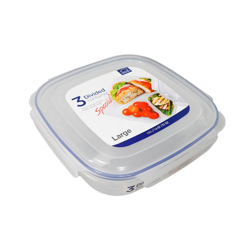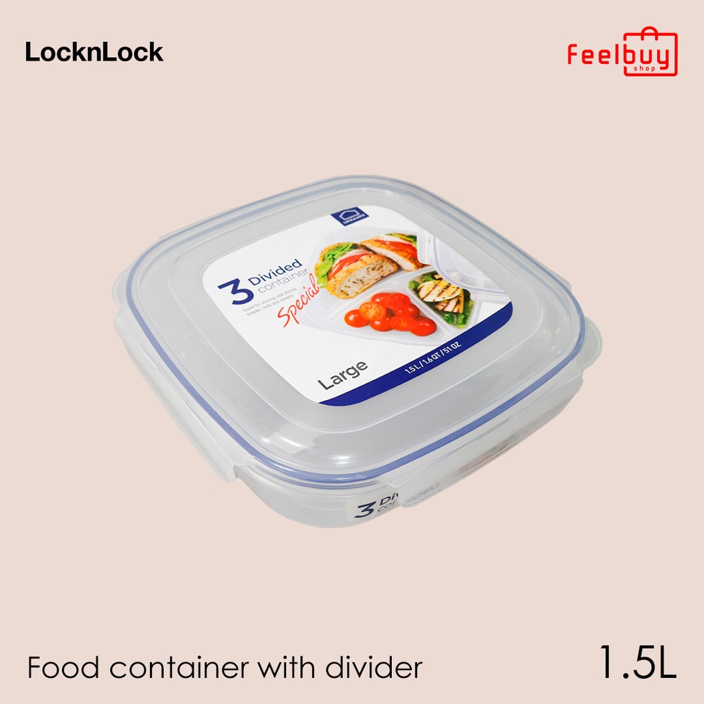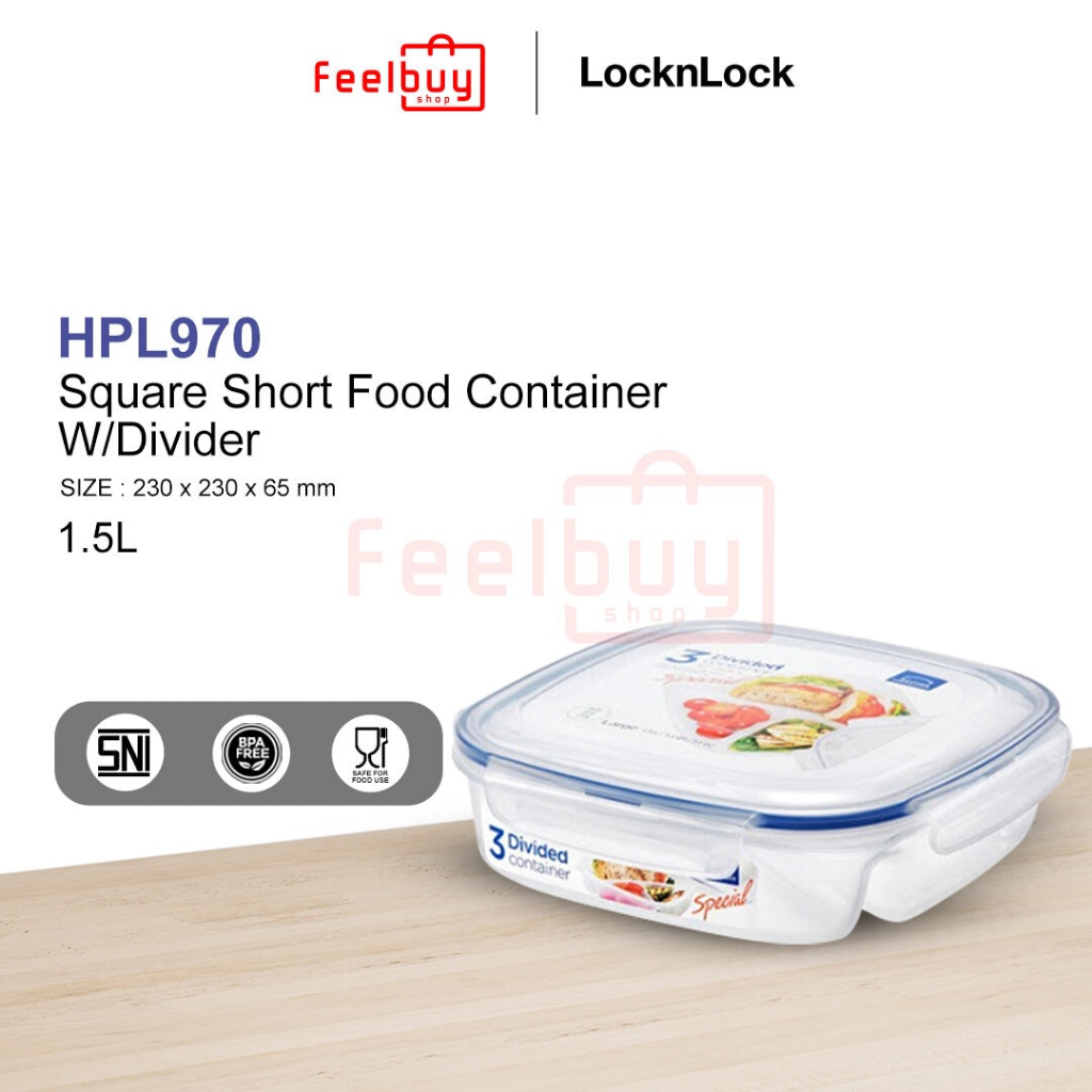 LocknLock Square Short Food Container 1.5L W/Divider HPL970