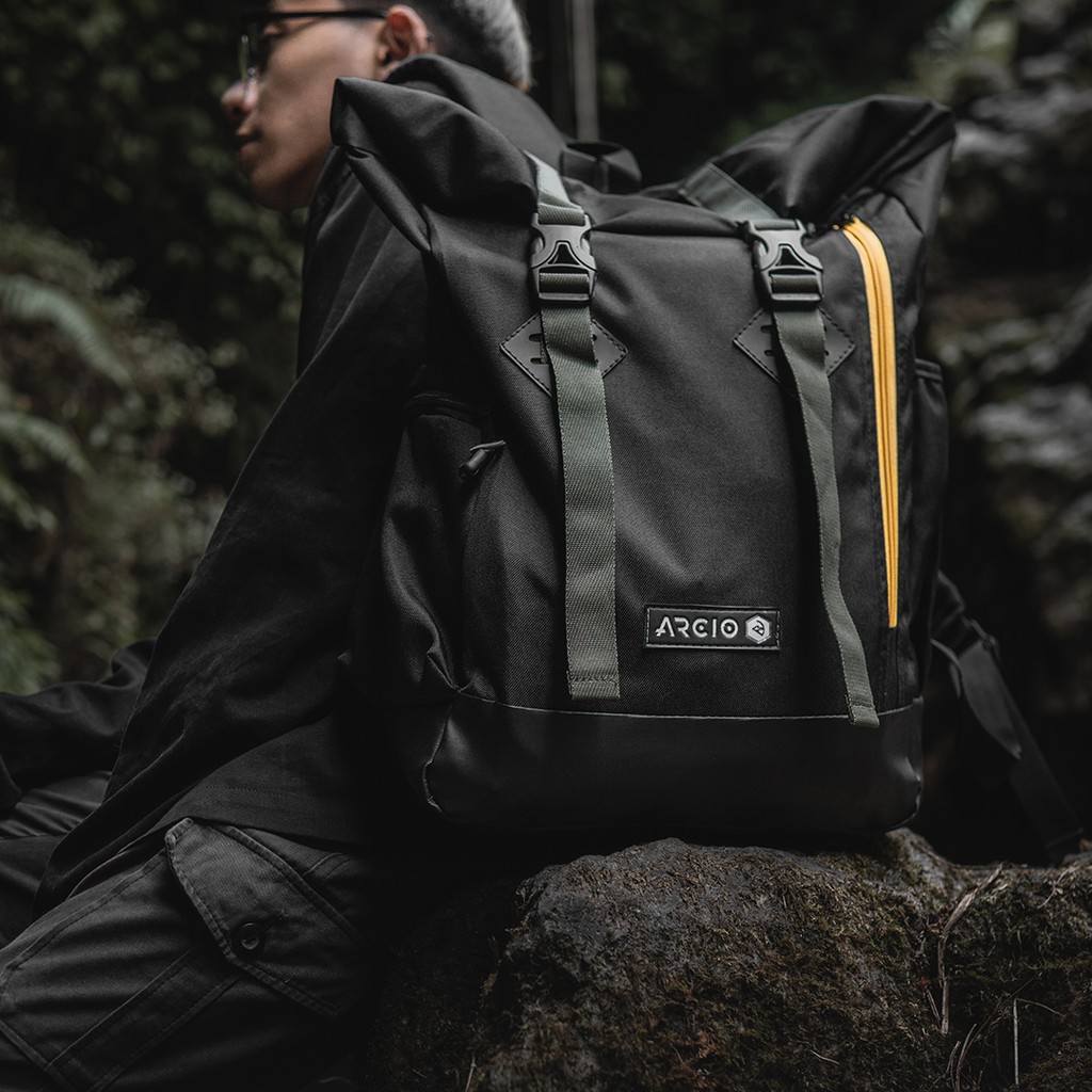 Logan Black | Tas Ransel Gulung Punggung Original Pria Wanita Kuliah Sekolah Backpack |FORIND Arcio