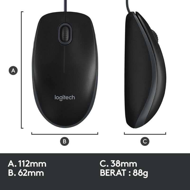 Logitech B100 Mouse Kabel USB Cable Kabel Optical