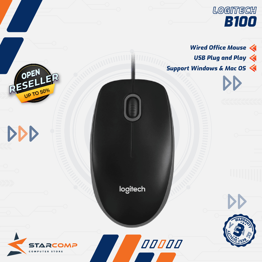 Logitech B100 Mouse Kabel USB Optical Wired