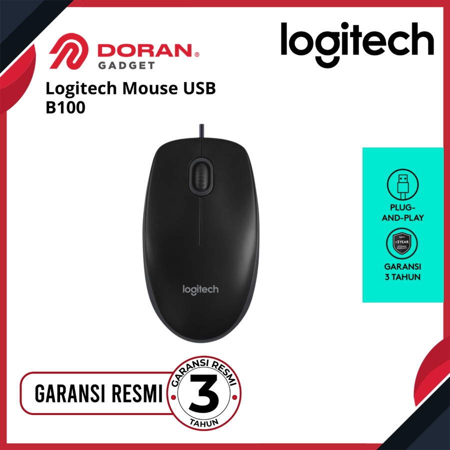 Logitech B100 Wired Mouse Optical USB Mouse Kabel - Garansi Resmi 3 Tahun