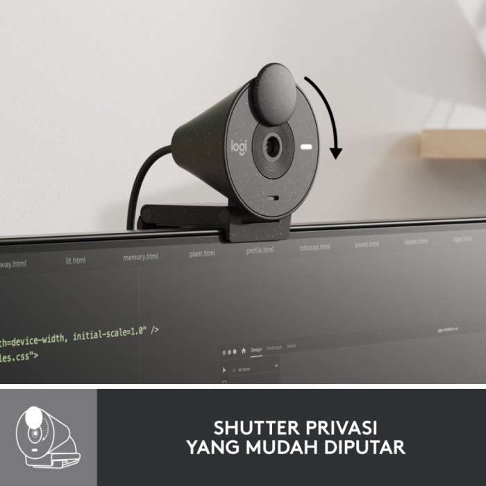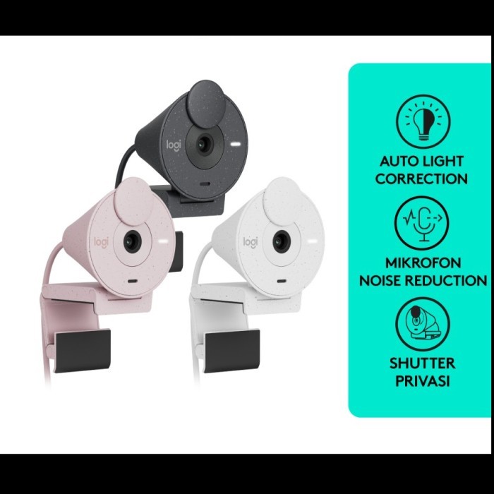 Logitech Brio 300 Webcam Full HD Shutter Privasi & Noise-Reducing Mic