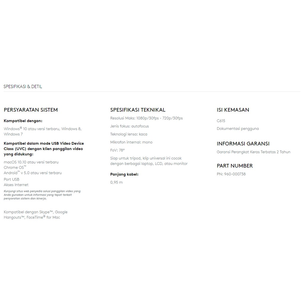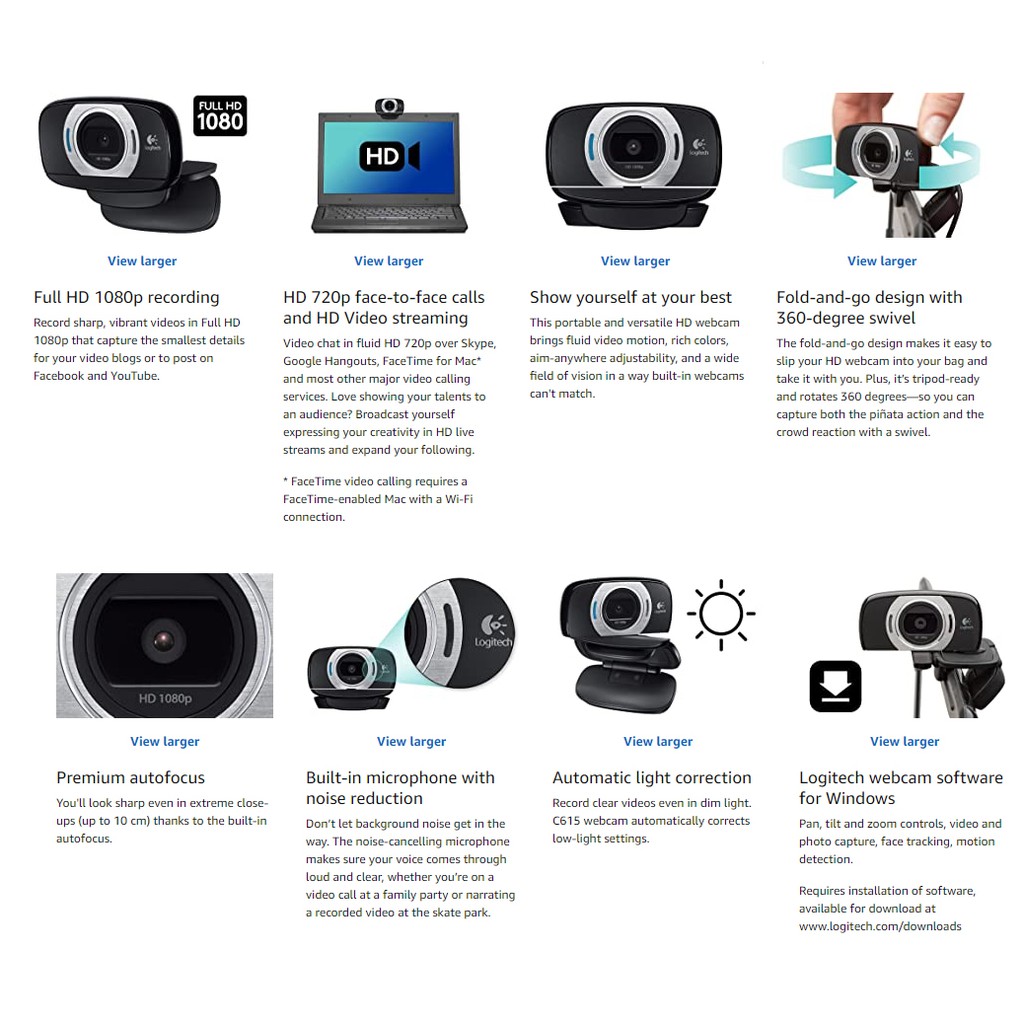 Logitech C615 HD Webcam 1080p AUTOFOCUS (LENSA KACA LEBIH JERNIH - DAPAT DIPUTAR 360 DERAJAT)