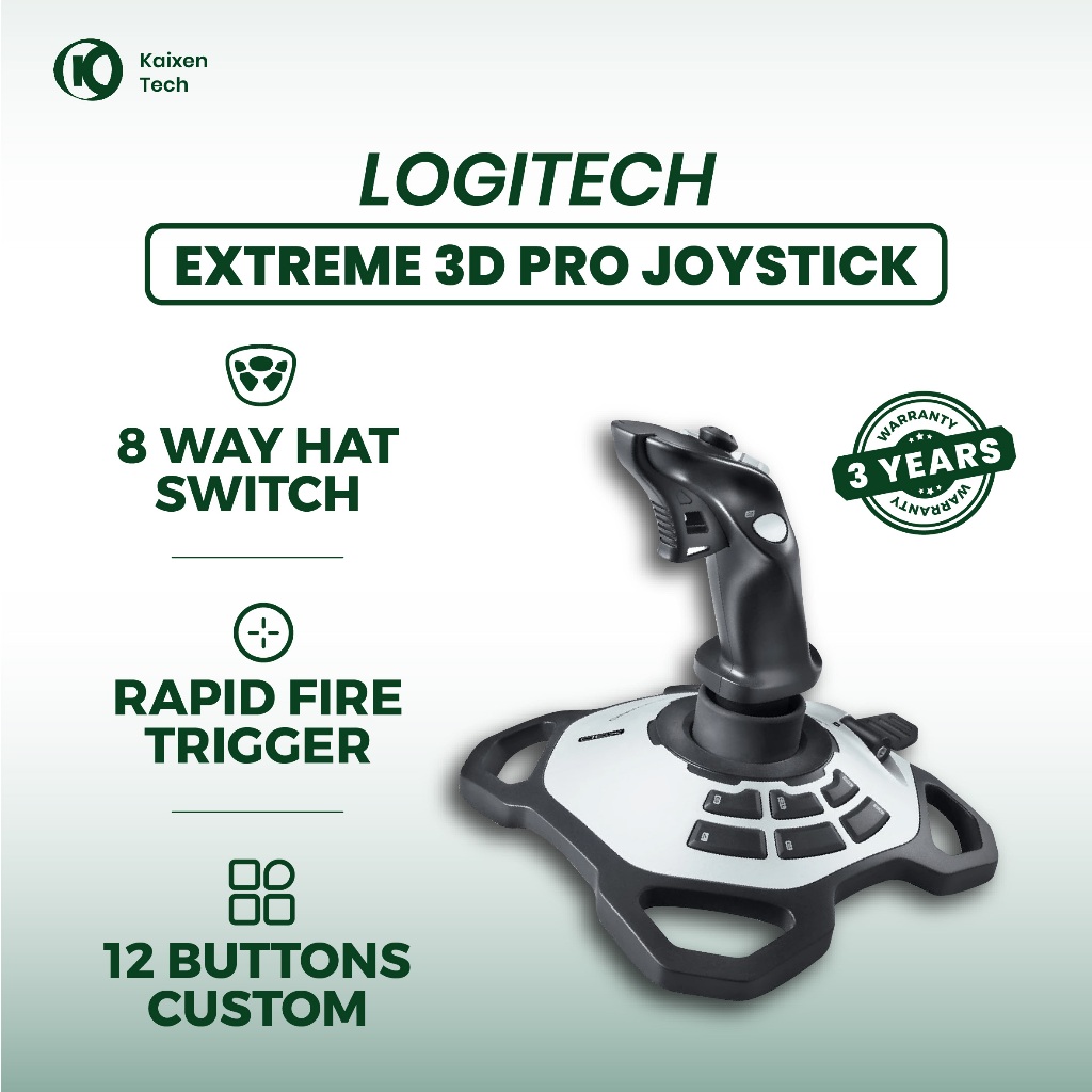 Logitech Extreme 3D Pro Flight Stick Wingman Joystick - Rudder Control Twist, Hat Switch 8-way