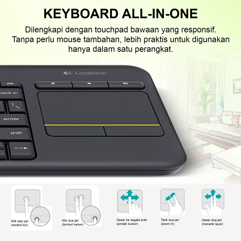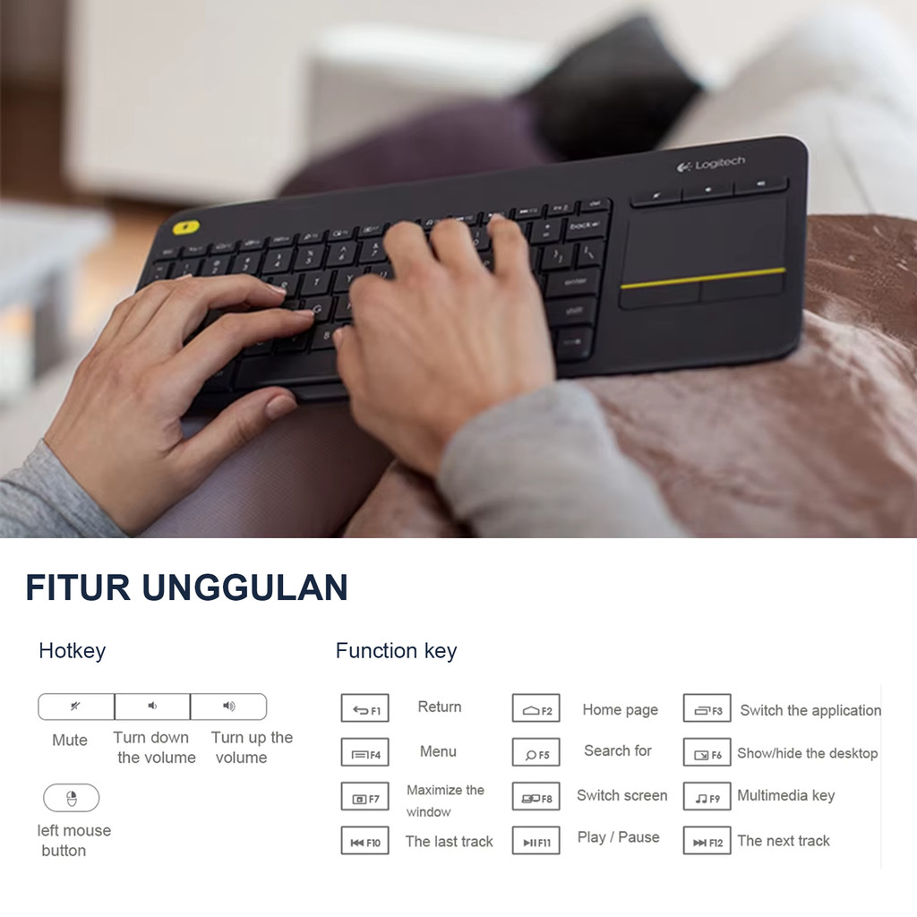 Logitech K400 Plus Keyboard Wireless Set Touchpad USB Reciever Keyboard for Android TV PC Laptop Tab Tablet