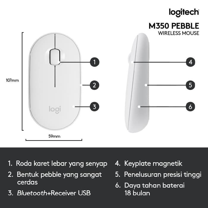 Logitech Pebble 2 M350s Mouse Wireless Bluetooth Slim Silent