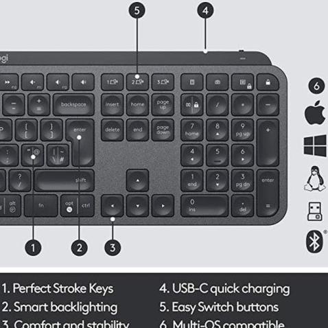 Logitech MX Keys Wireless Illuminated Keyboard Bluetooth Multi Device