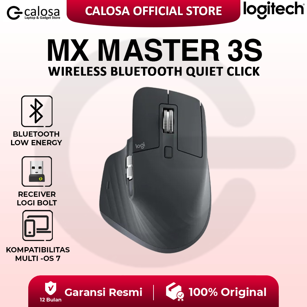 Logitech MX Master 3S Performance Mouse Wireless Bluetooth Quiet Click