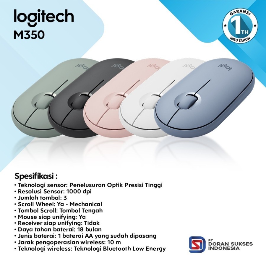Logitech Pebble M350 Wireless Silent Mouse With Nano USB Receiver - Garansi Resmi 1 Tahun