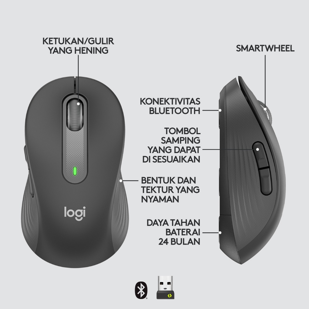 Logitech Signature M650 Large Mouse Wireless Bluetooth Silent Full Size