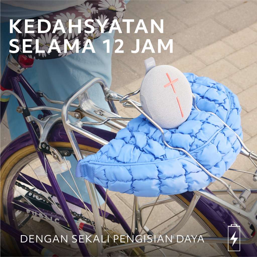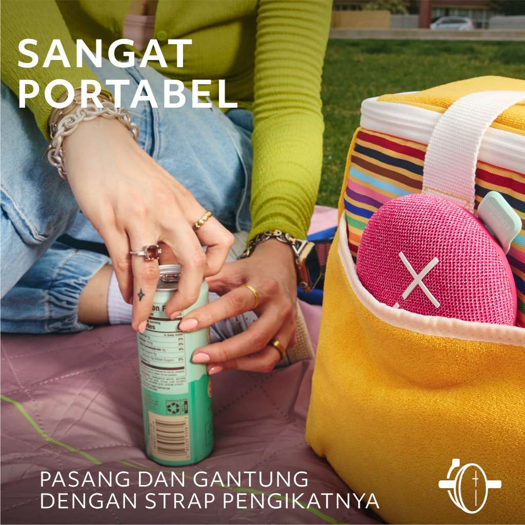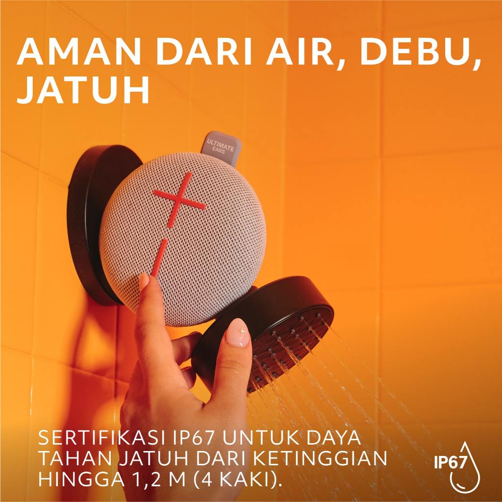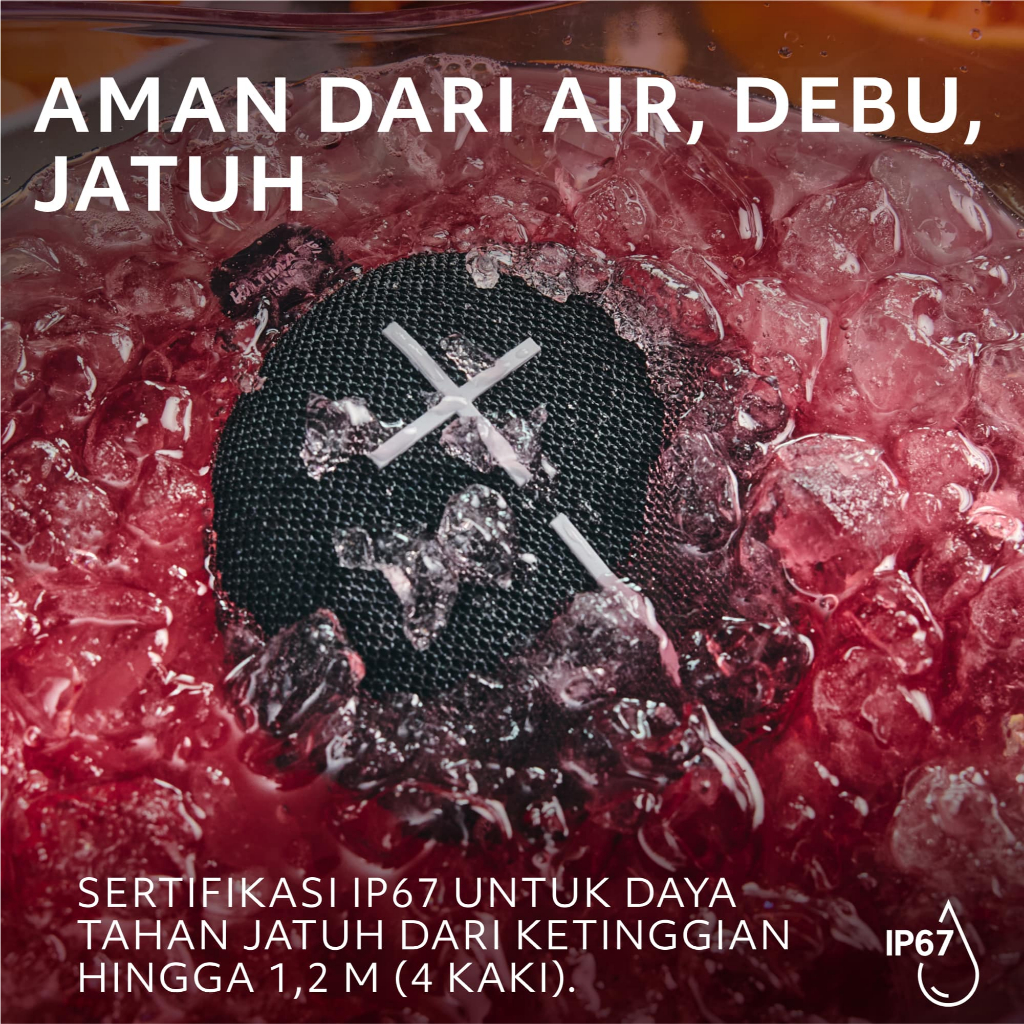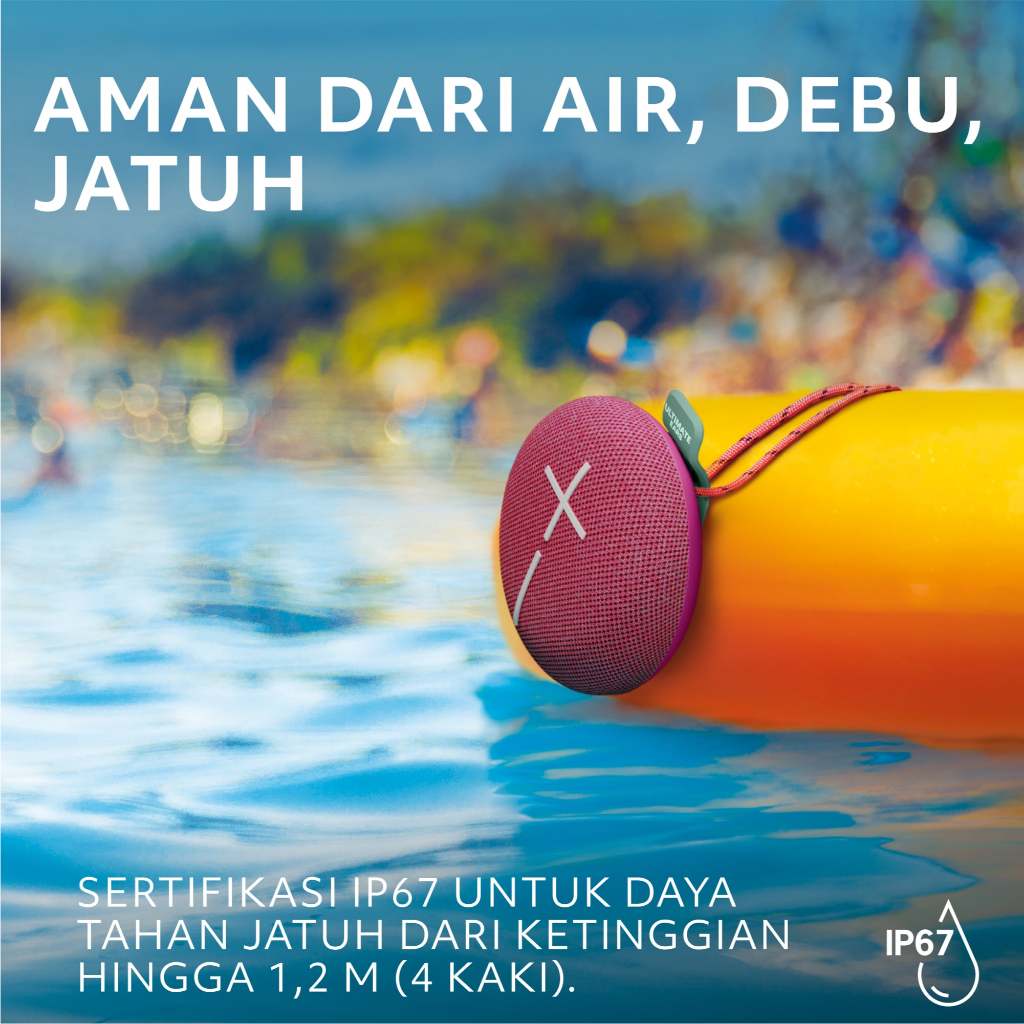 Logitech Speaker Bluetooth Tahan Air Ultra Portabel ULTIMATE EARS MINIROLL, Big Bass, Tahan Debu IP67, Jangkauan 131 kaki (40 m)