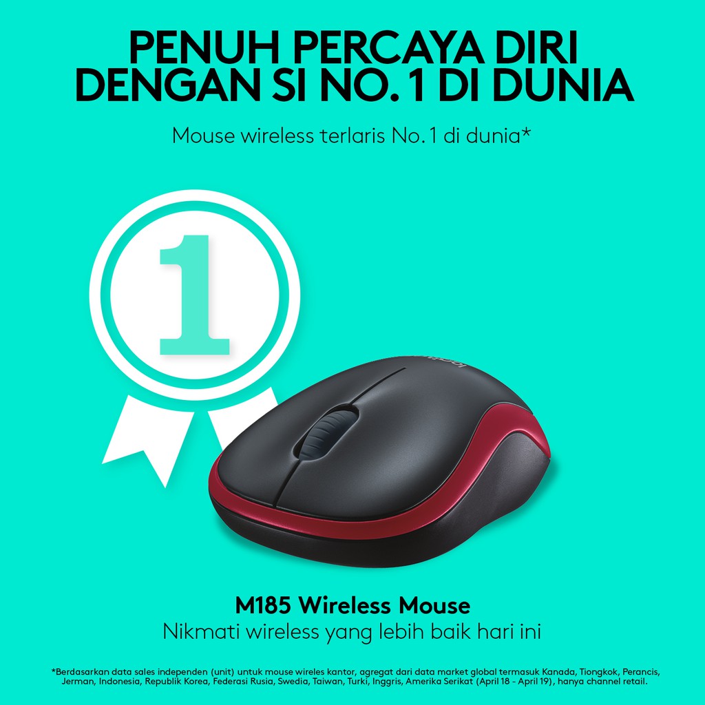 Logitech Wireless Mouse M185 Red Optical - Mouse Wireless M 185 Merah Original