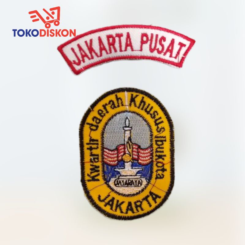 Logo Bordir Pramuka | Bordir Kwartir Jakarta / Bordir Lambang Monas + Jakarta Timur | Kitri Pramuka | Kitri Bulat / Kitri Persegi + Gerakan Pramuka