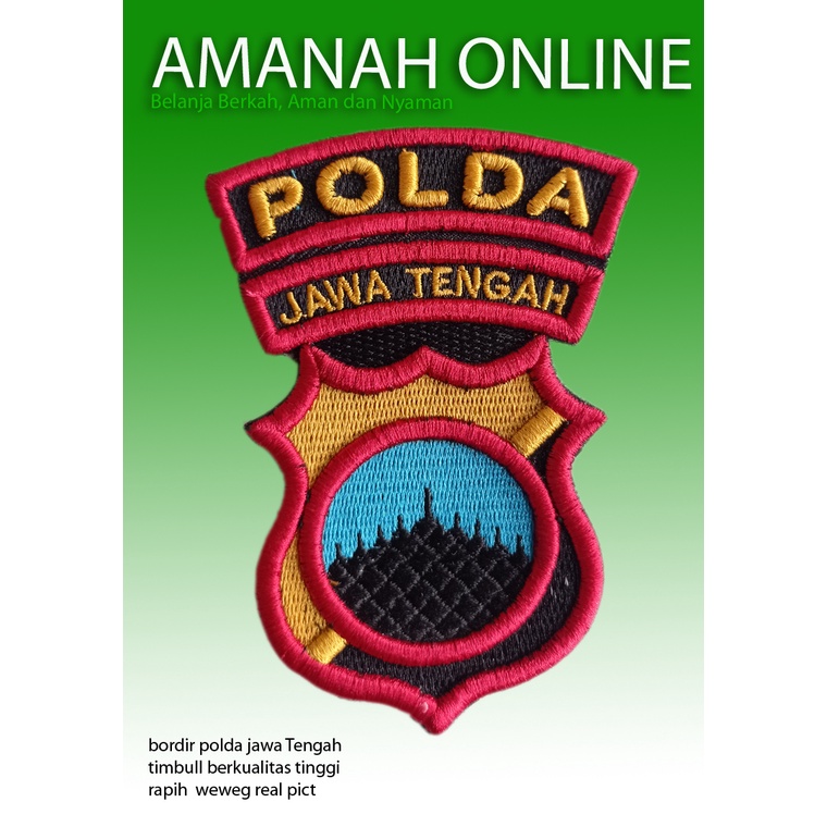 Logo Bordir polda Jawa Tengah, Polda Jateng bordir timbul, rapih berkualitas weweg, untuk atribut dinas kepolisian dan scurity real pict, chat kami jika kurang paham