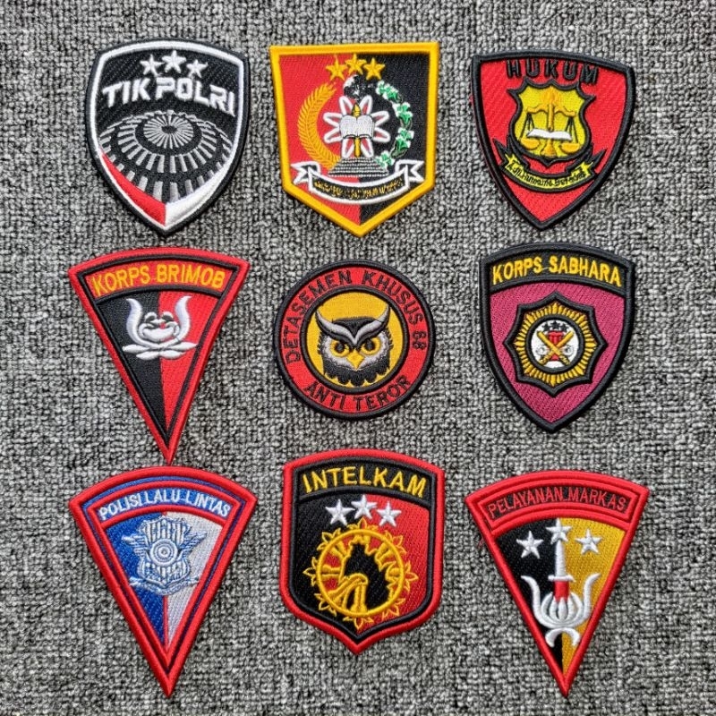Logo Lengan Unit Polri Bordir Timbul satintelkam reskrim reserse logistik binmas tahti perencanaan inspektorat sekretariat mabes polri propam keuangan tik polri hukum korps brimob densus88 korps sabhara polantas intelkam