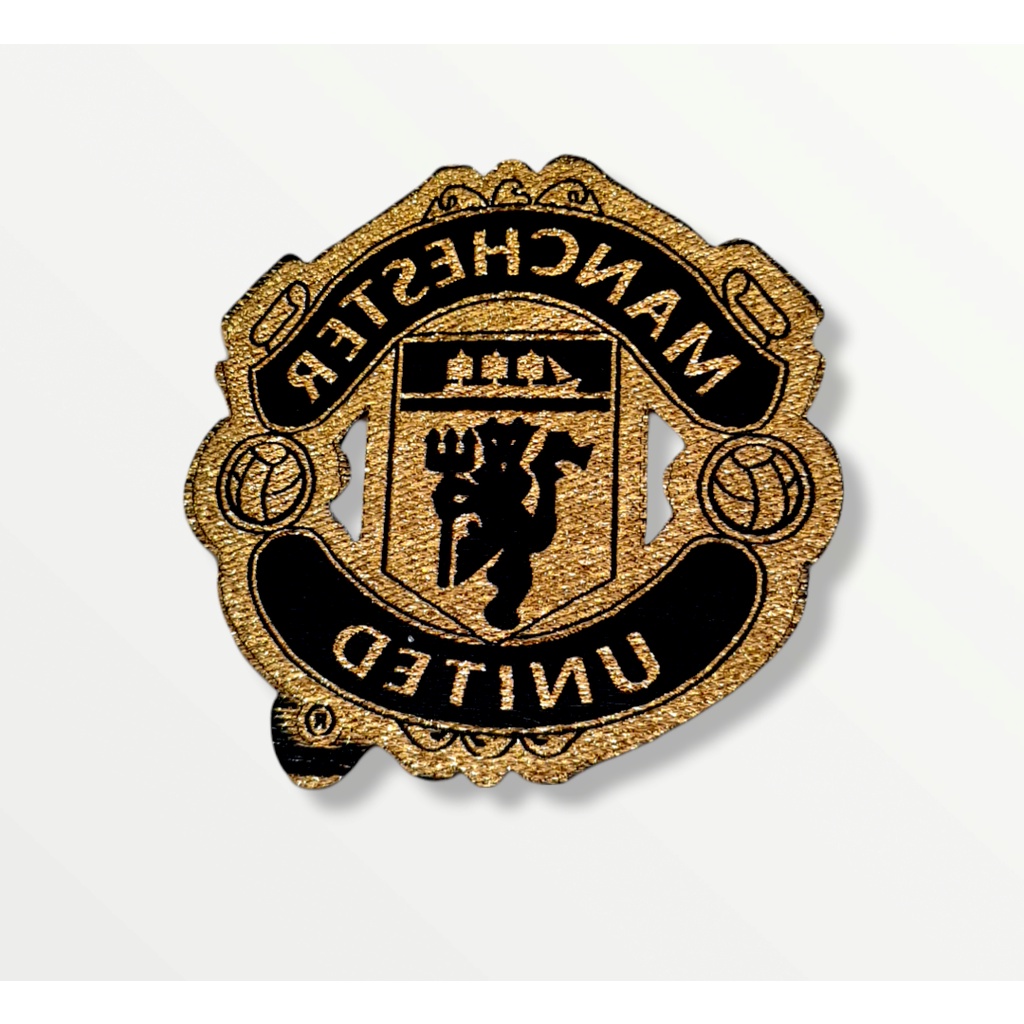 Logo Patch Woven / Emblem Club Bola MU Hitam Gold