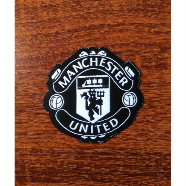 Logo Patch Woven / Emblem Club Bola MU Hitam Putih